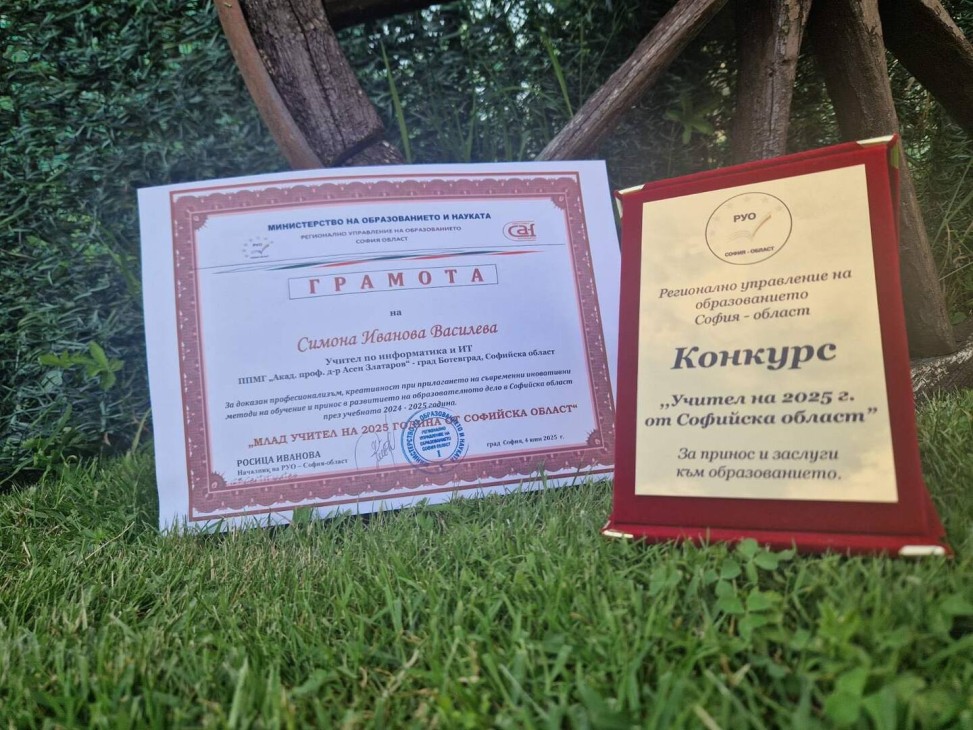 Младото поколение учители също получи своето заслужено място. Г-жа Симона Василева бе наградена като „Млад учител на годината 2025“, като нейният труд и стремеж към съвременно образование са ярък пример за бъдещето на преподаването.