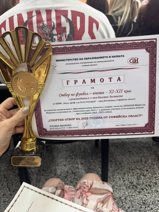 Отбор по футбол юноши 11-12 клас – ППМГ „Акад. проф. д-р Асен Златаров“, гр. Ботевград;