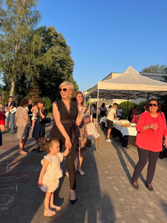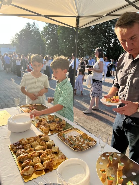 Събитието продължи с музика на живо от квартет "Белканто" и бившите възпитанички Валери Маринова и Меги, DJ парти с много настроение, вкусни изненади, подготвени от професионалните паралелки, фото будка за спомени в реално врем, разходки из обновеното училище и връщане в класните стаи.