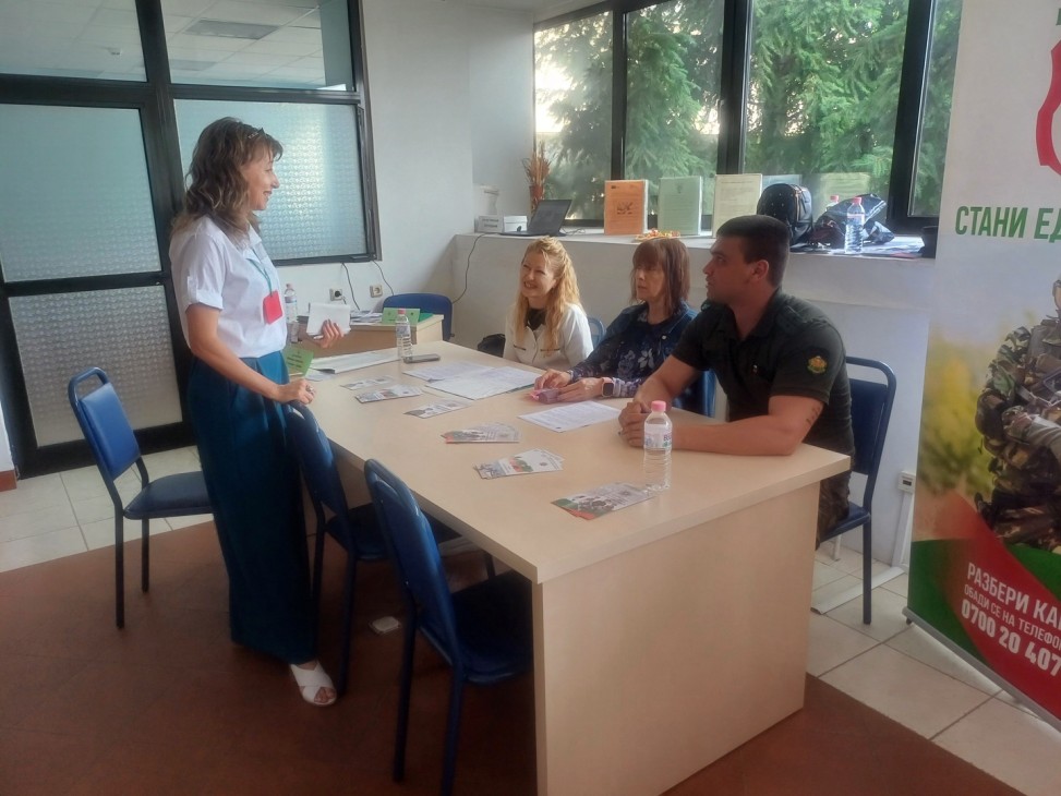 Представителите на Централното военно окръжие запознаха присъстващите, проявили интерес, с критериите и условията за приемане на граждански лица на кадрова военна служба в Българската армия. Освен това с разяснения и предоставяне на документи съдействаха на желаещи да се обучават във висшите военни училища в страната.
