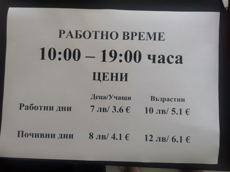 В работните дни таксата за деца и учащи е 7 лв., а за възрастни - 10 лв. В почивните е дни е сътветно 8 лв. и 12 лв.