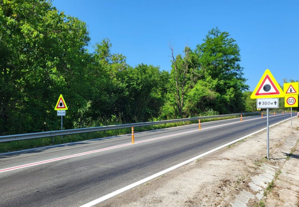 В област Благоевград приключи обезопасяването на участък от път I-1 в Кресненското дефиле при 383-и км. В 100-метрова отсечка са поставени пътни знаци, положена е асфалтобетонова настилка и напречна шумна маркировка, както и маркировка с цифри 50 км/ч върху пътното платно.