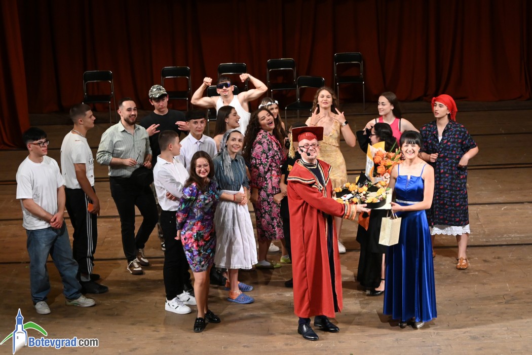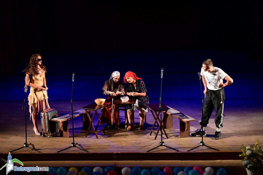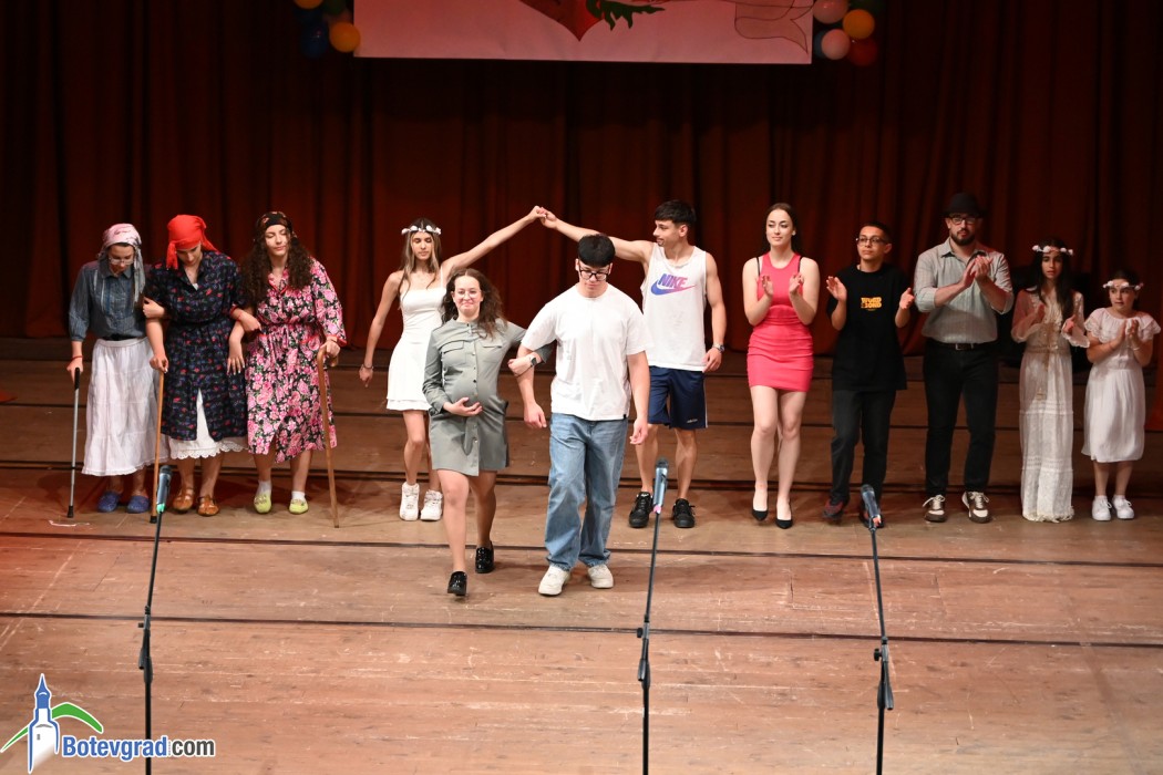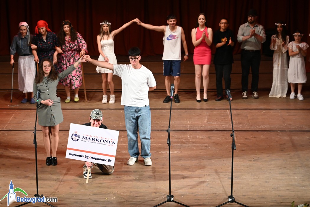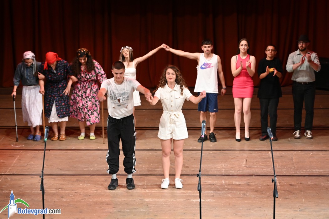 Възпитаници на езиков център “Марконис“ също се изявиха на сцената на читалището. Младите хора се превъплътиха в образите на героите на пиеса, написана от самите тях, за любов и омраза, истина и лъжа, преходното и непреходното в живота.