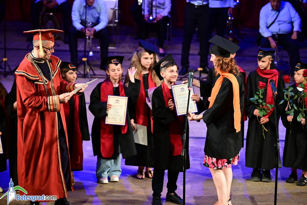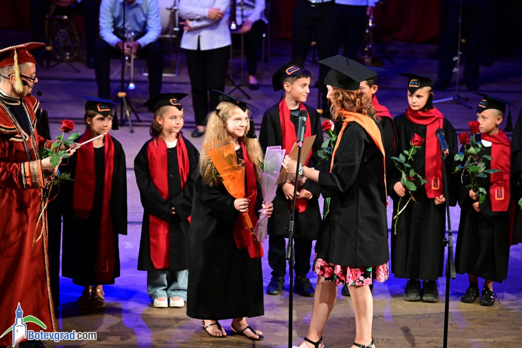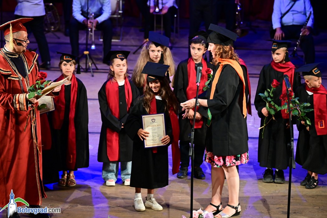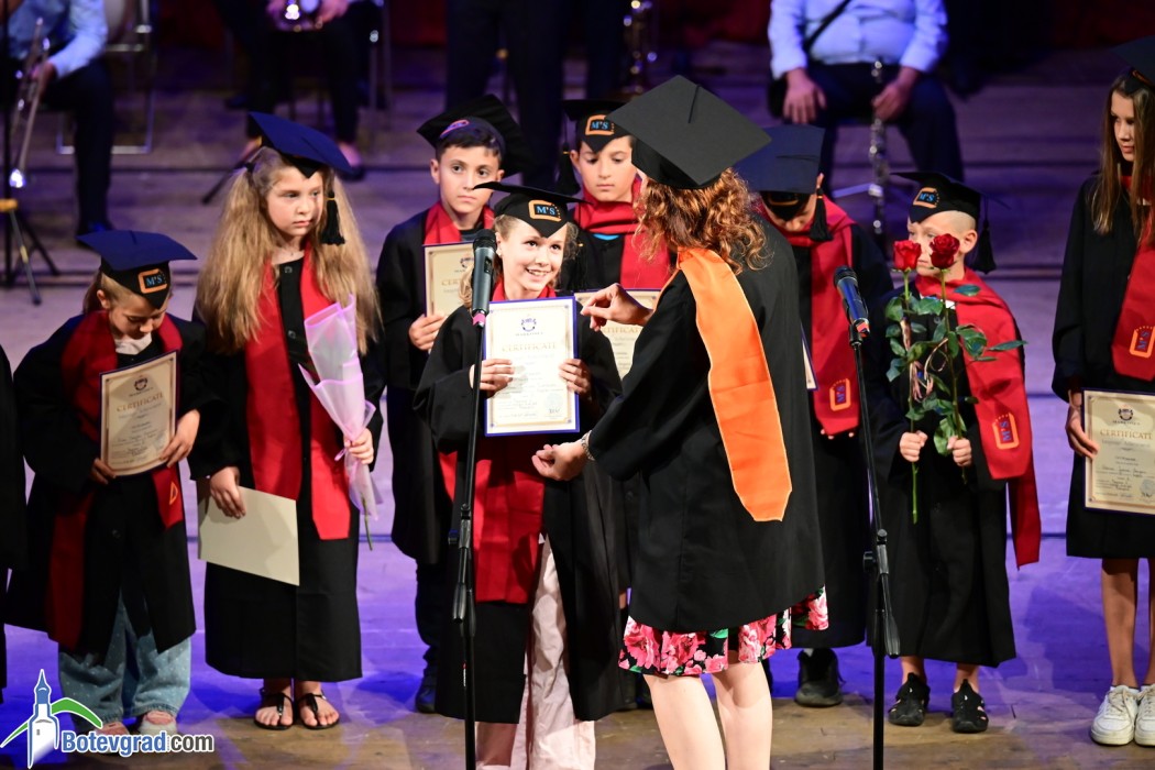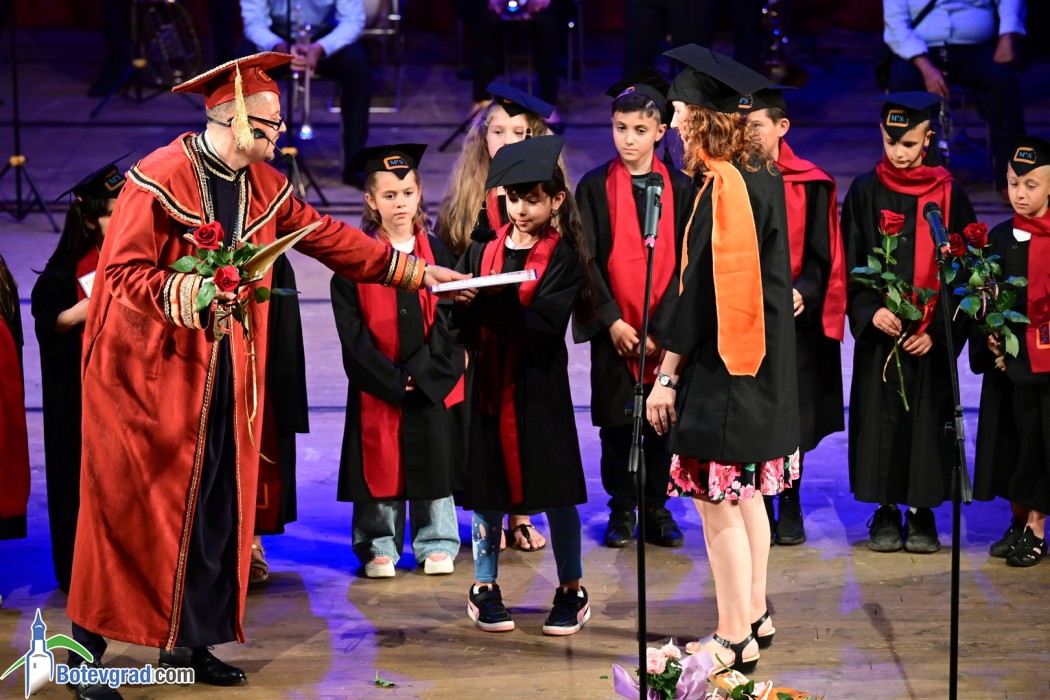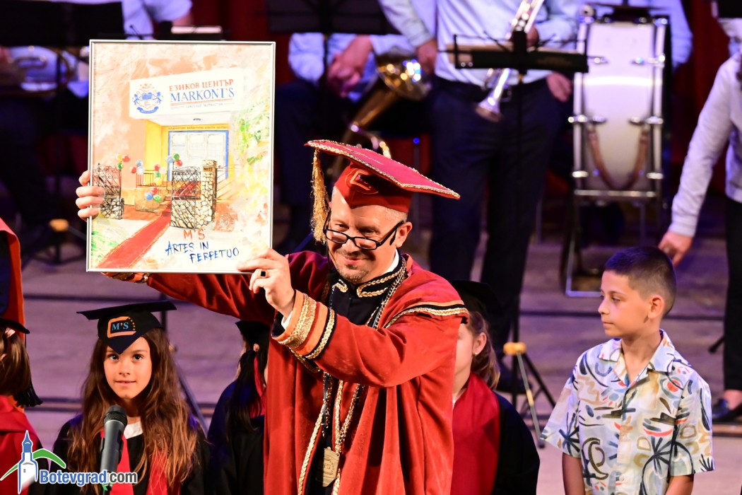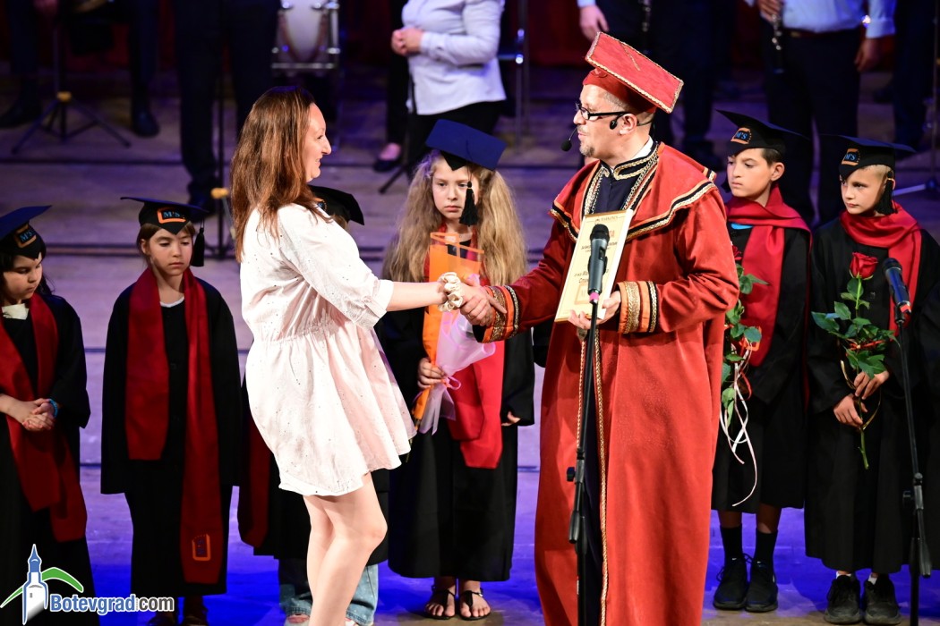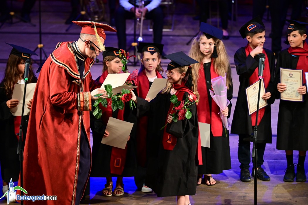 Вълнуващ беше и финалът на празничната програма, когато на сцената излязоха най-малките ученици на езиковия център, за да получат сертификатите си за успешно завършено езиково ниво.