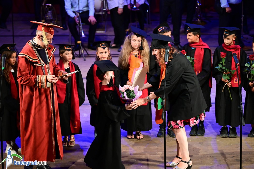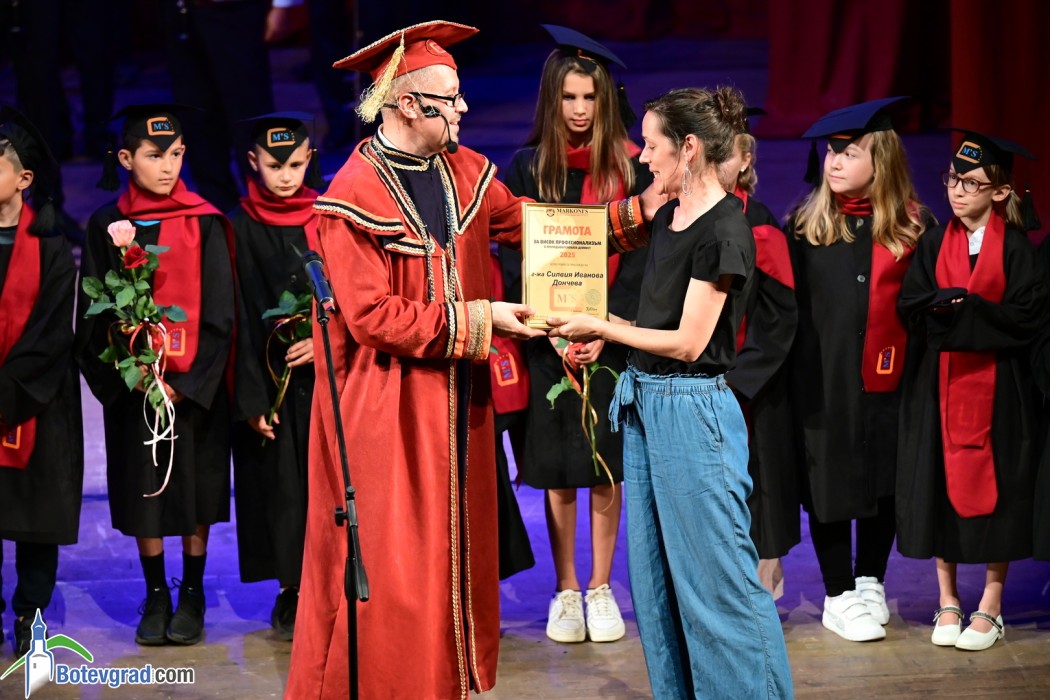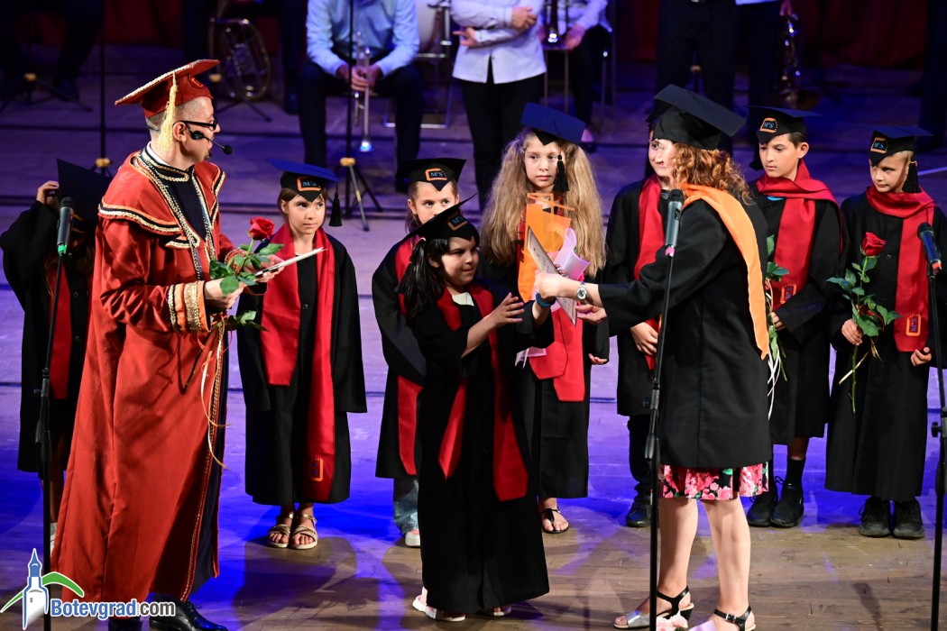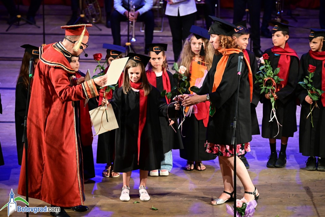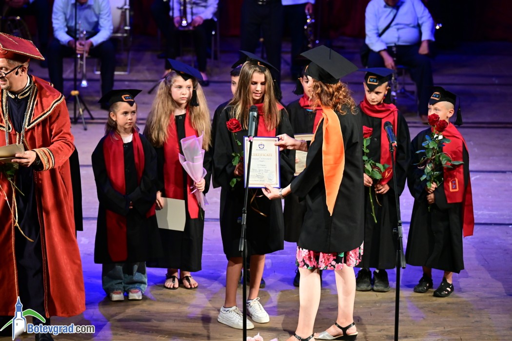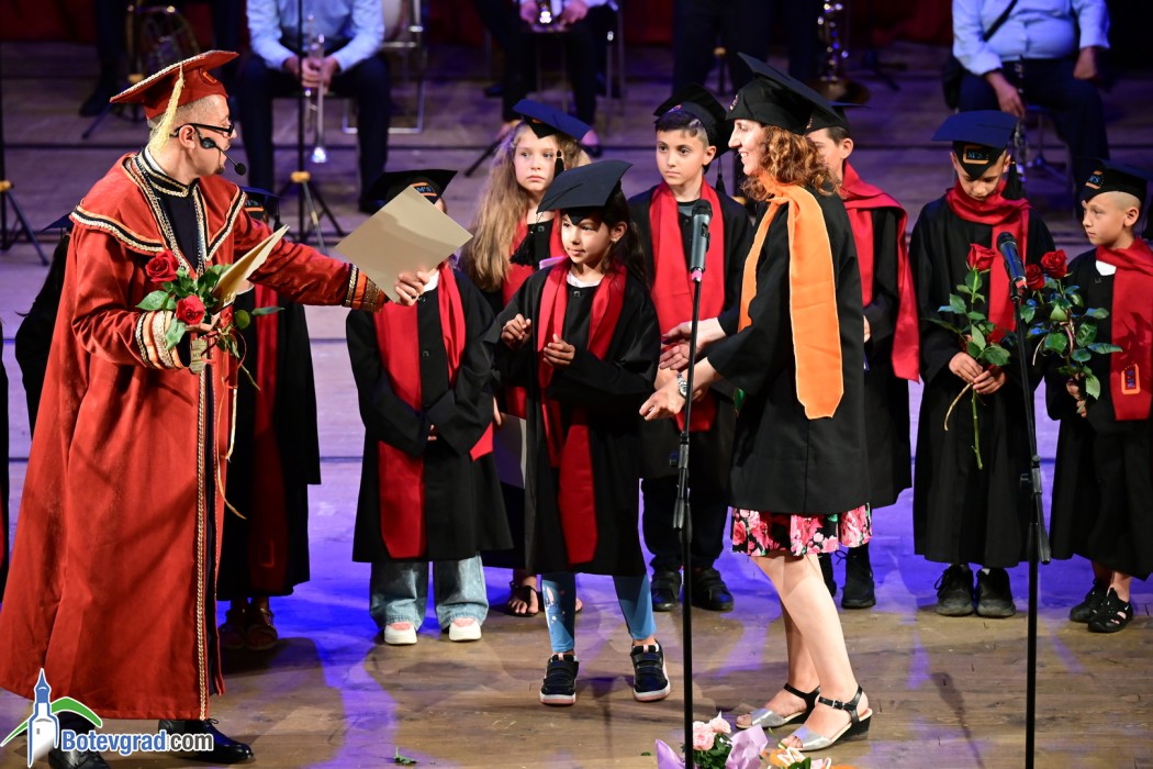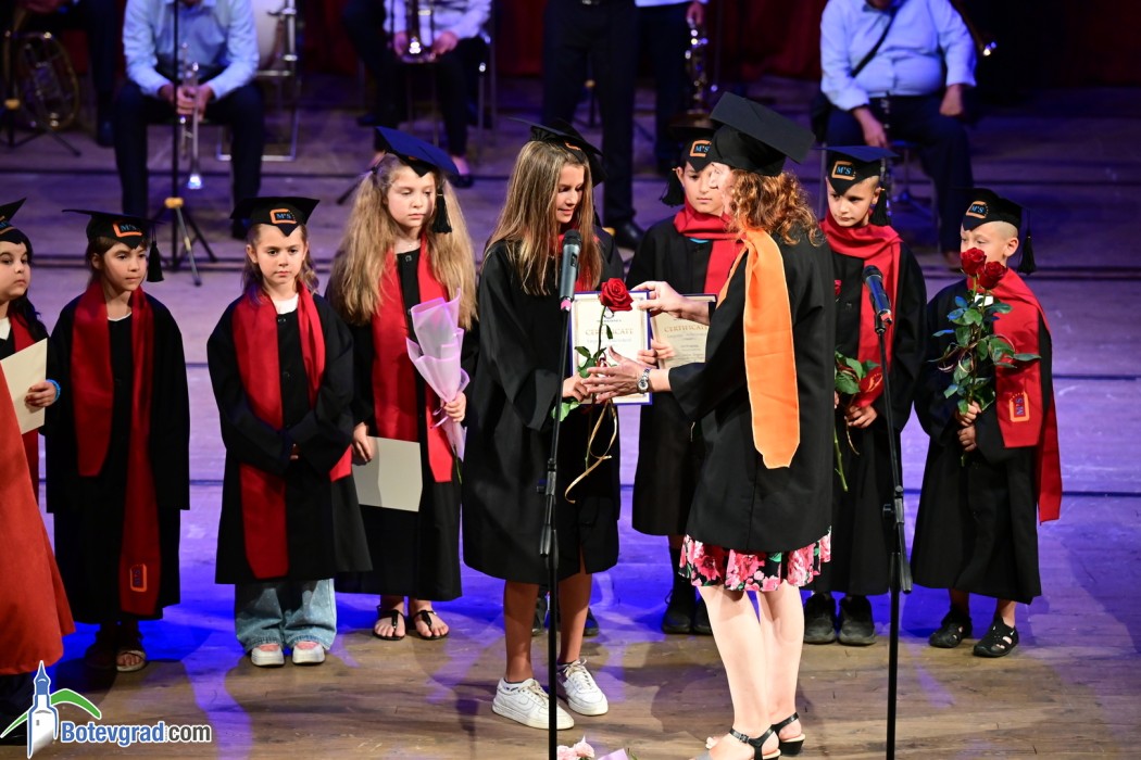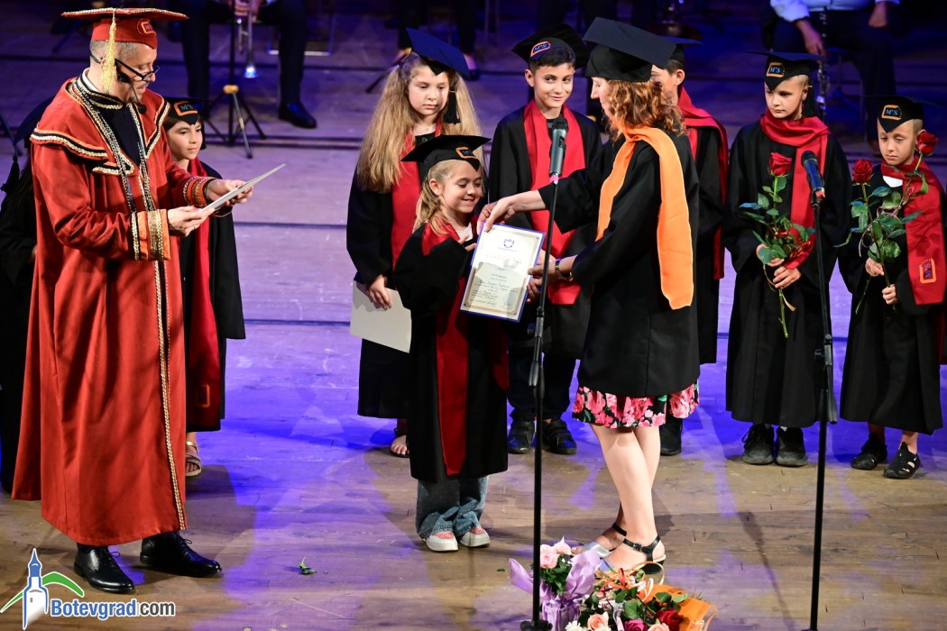 Вълнуващ беше и финалът на празничната програма, когато на сцената излязоха най-малките ученици на езиковия център, за да получат сертификатите си за успешно завършено езиково ниво.