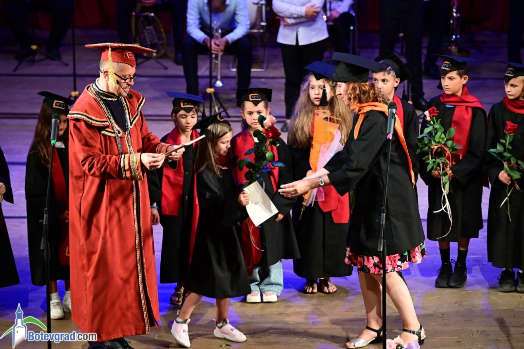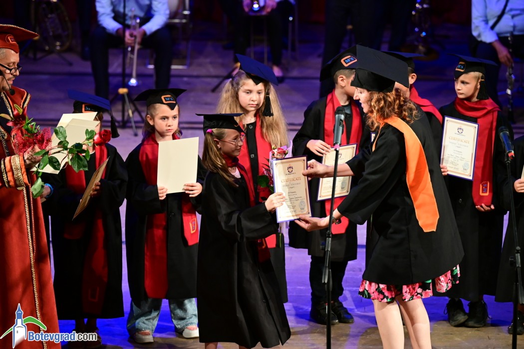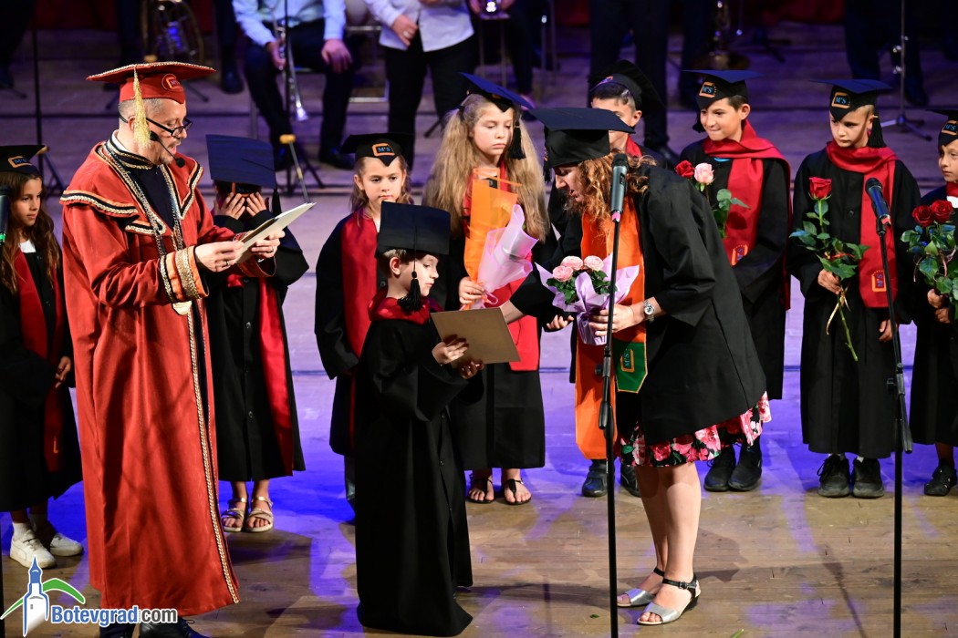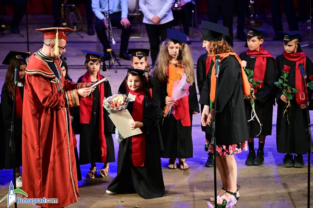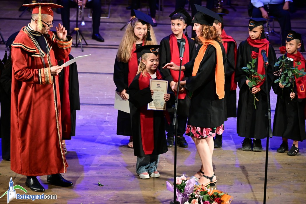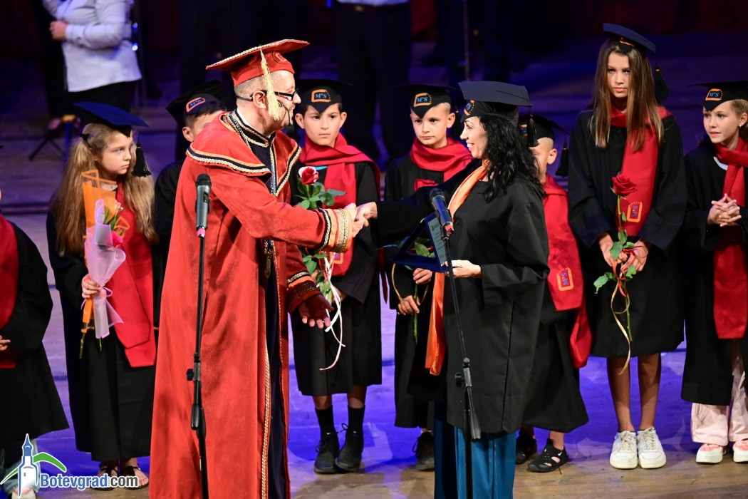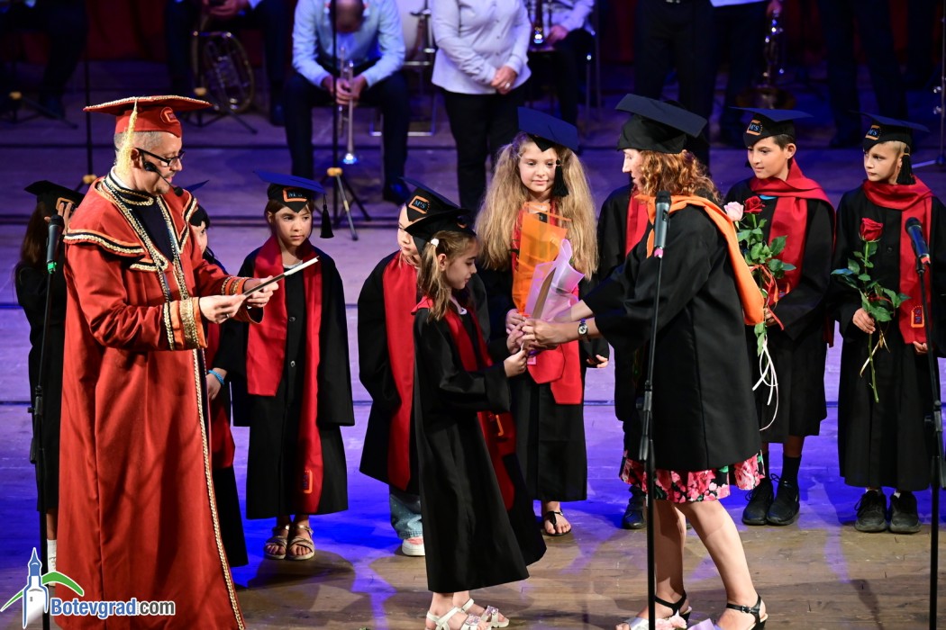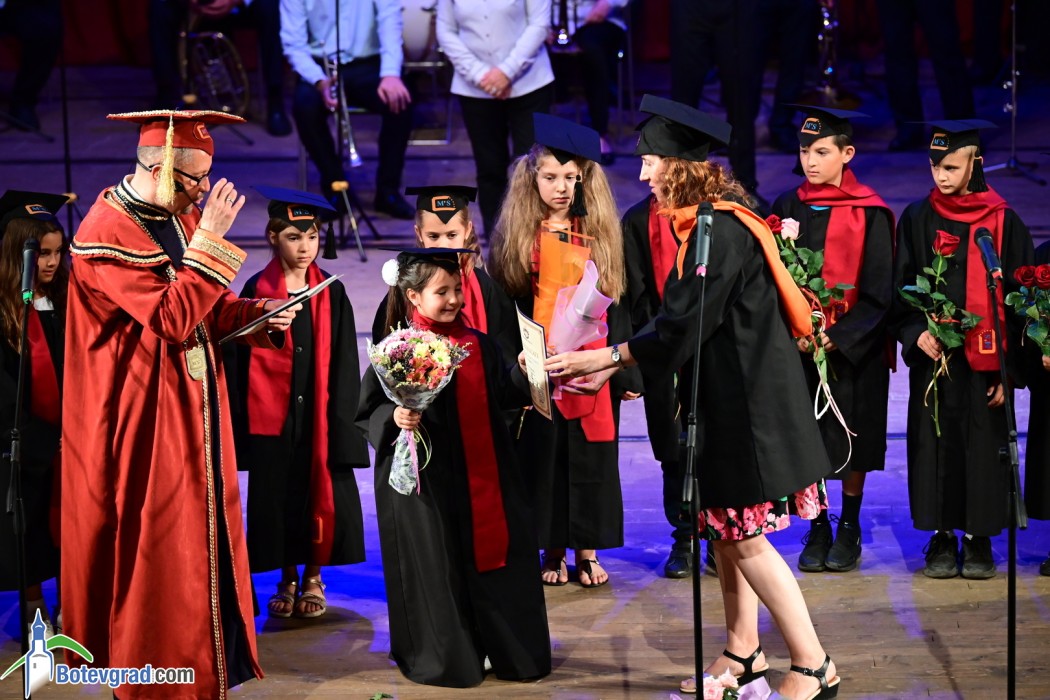Вълнуващ беше и финалът на празничната програма, когато на сцената излязоха най-малките ученици на езиковия център, за да получат сертификатите си за успешно завършено езиково ниво.