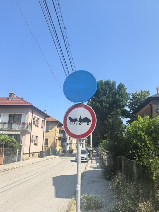 Днес е констатирано, че отново някой умишлено го е унищожил, този път със синя боя. Унищоженият знак представлява знак B1 „Забранено влизането", който е от съществено значение за безопасността на движението в този участък. Влизанто на превозни средства при липсата на забранителния знак, създава опасност за всички участници в движението.
