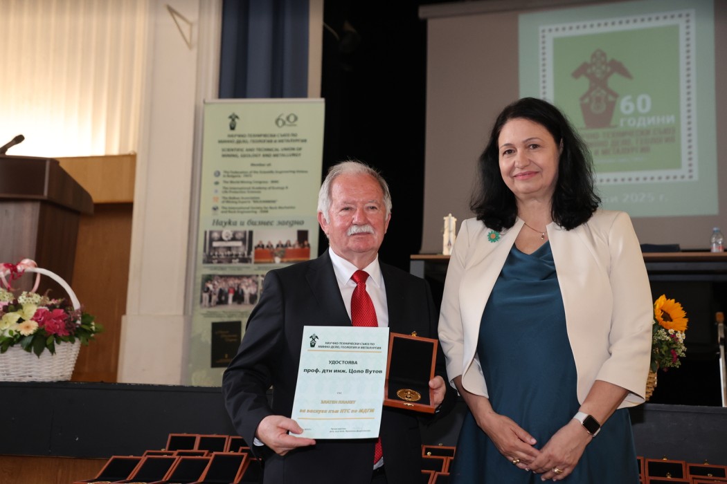 Проф. дтн инж. Цоло Вутов, почетен председател на Научно-технически съюз по минно дело, геология и металургия, откри тържественото събитие, посветено на 60-ата годишнина на организацията (16 юни).