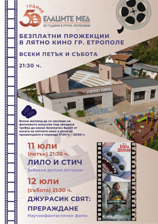 БЕЗПЛАТНИ ПРОЖЕКЦИИ В ЛЯТНО КИНО ГР. ЕТРОПОЛЕ