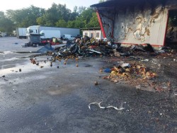 Голям пожар е възникнал в складова база за плодове и зеленчуци, намираща се на ул. "Севаст Огнян", по посока изхода на Ботевград, преди пътния възел, който свързва околовръстния път с разклона за село Литаково.