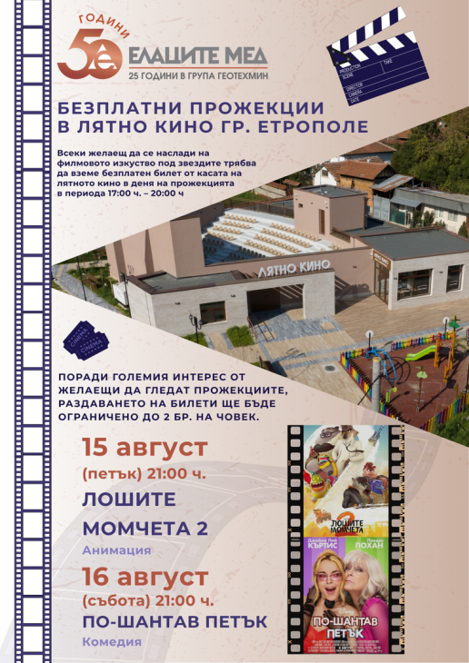 ПОРАДИ ГОЛЕМИЯ ИНТЕРЕС ОТ ЖЕЛАЕЩИ ДА ГЛЕДАТ ПРОЖЕКЦИИТЕ, РАЗДАВАНЕТО НА БИЛЕТИ ЩЕ БЪДЕ ОГРАНИЧЕНО ДО 2 БР. НА ЧОВЕК.