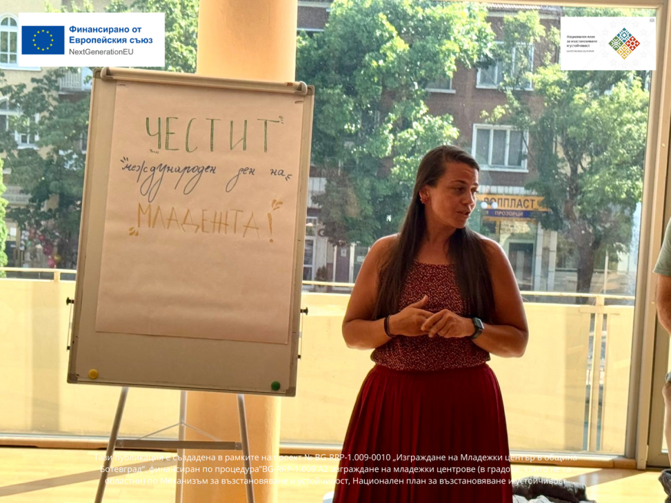По повод Международния ден на младежта - 12 август, Младежки център – Ботевград организира кръгла маса с участието на младежи от общината. Събитието се проведе в приятелска и творческа атмосфера, като целта беше да се даде глас на младите хора, да се чуят техните идеи и виждания за развитието на общността.