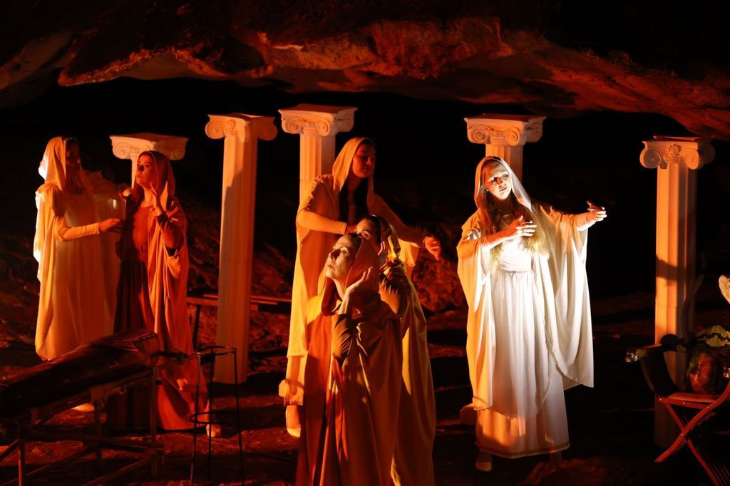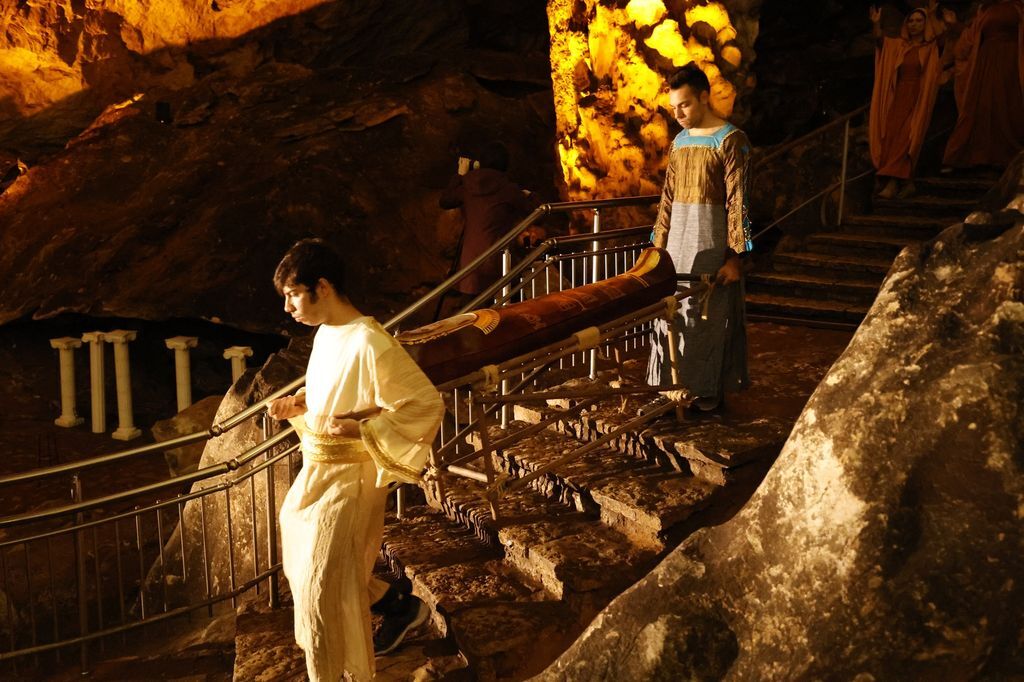 Зрителите в единно шествие слязоха до недрата на пещерата, където станаха свидетели на най-древната заупокойна меса – по сакралния тракийски епос за Орфей и Евридика.