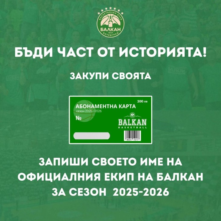 Ако искате и Вашето име да остане завинаги върху екипа на Балкан, станете част от този изключителен момент – вземете сезонна карта и влезте в историята на българския баскетбол –призовават от Баскетболен клуб „Балкан”.