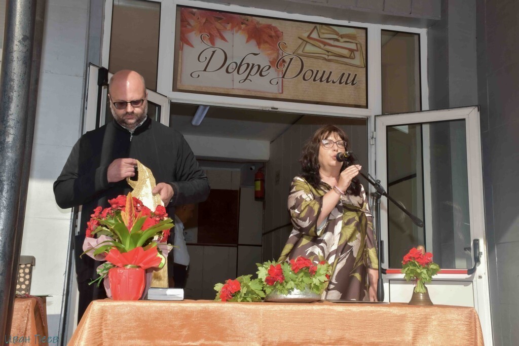 Вълнуващо и прочувствено слово произнесе директорът на ПГ „Тодор Пеев“, г-жа Десислава Найденова. 41 ученици ще прекрачат прага на училището за първи път. За тях, менчето с вода плисна Кметът на Община Етрополе инж. Владимир Александров, а първия училищен звънец удари инж. Васил Шишков-директор на Рудодобивен комплекс на Елаците Мед.