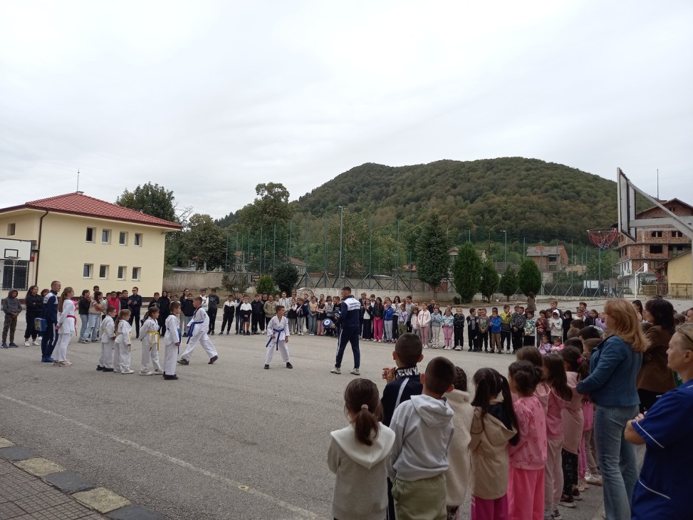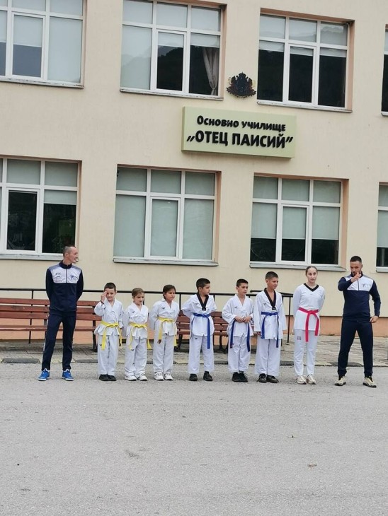 Със спортен дух и с приповдигнато настроение цялото училище се включи в най-различни таекуондо-упражнения.