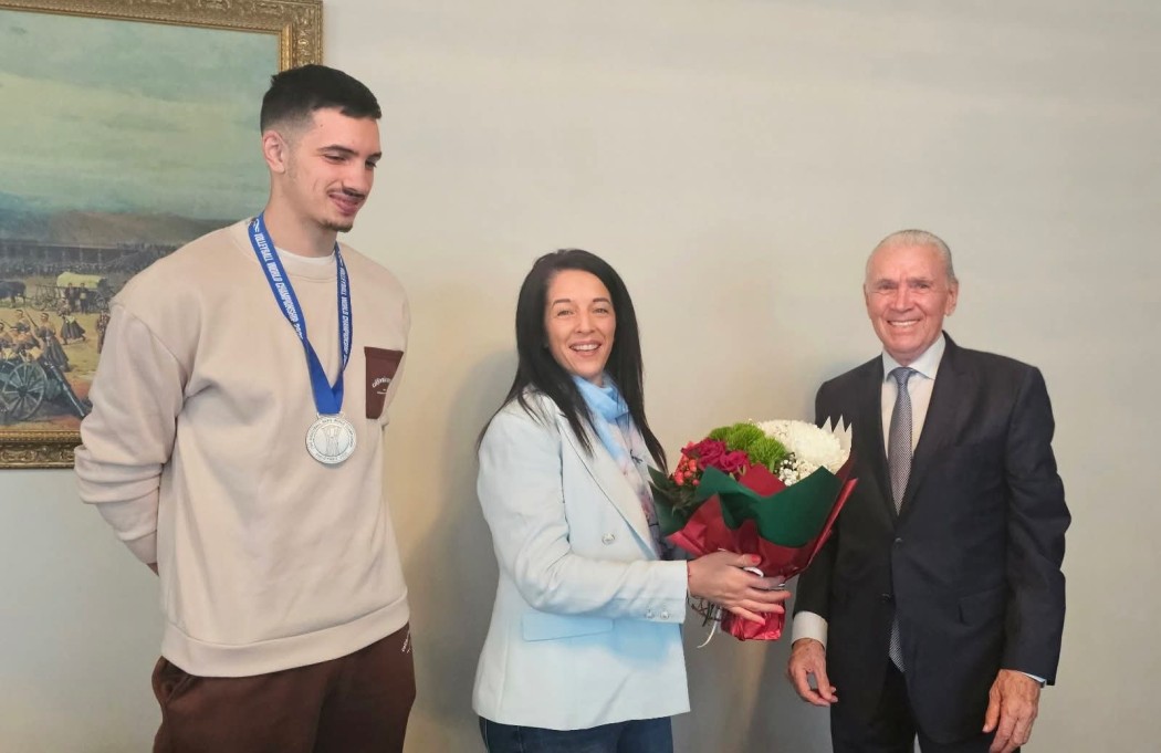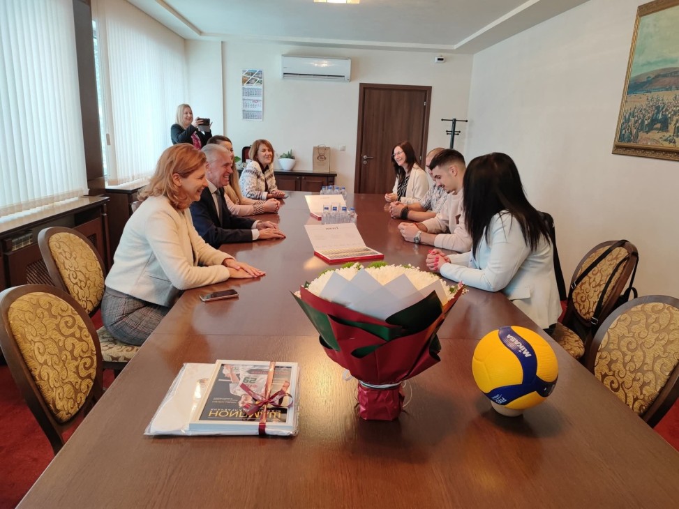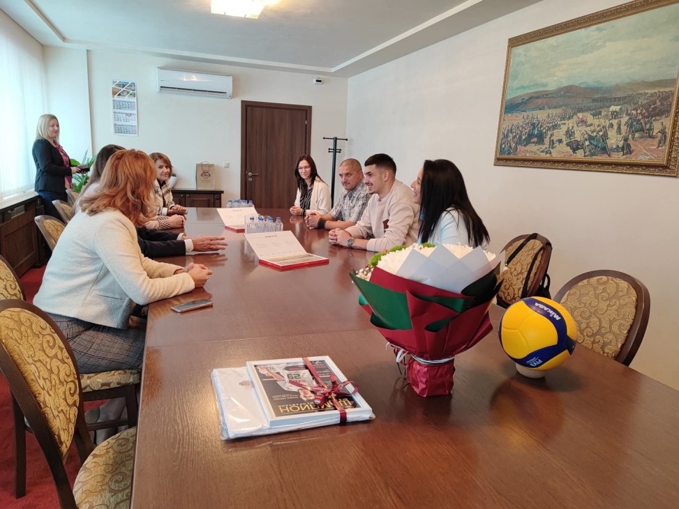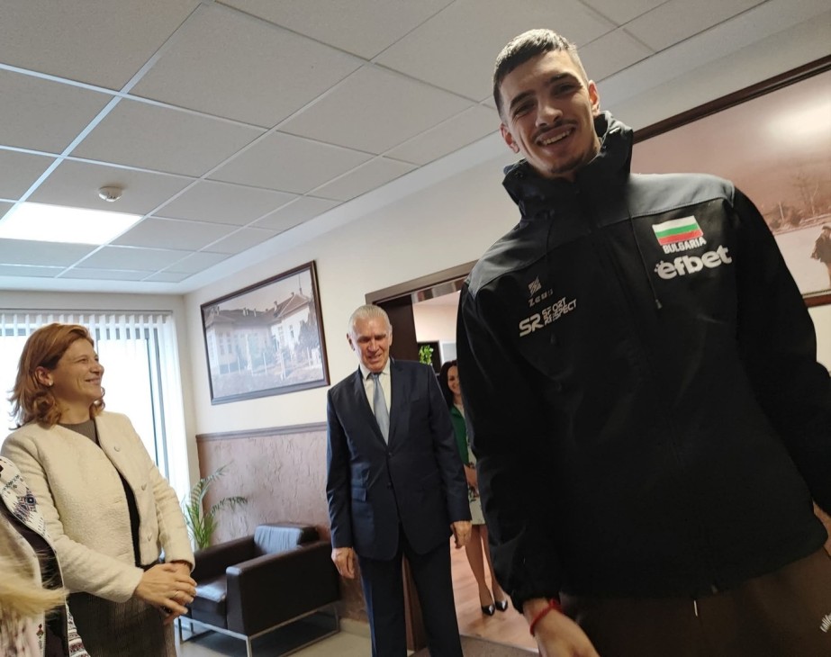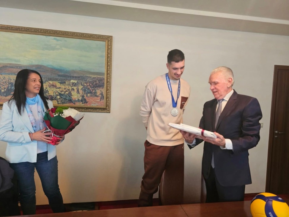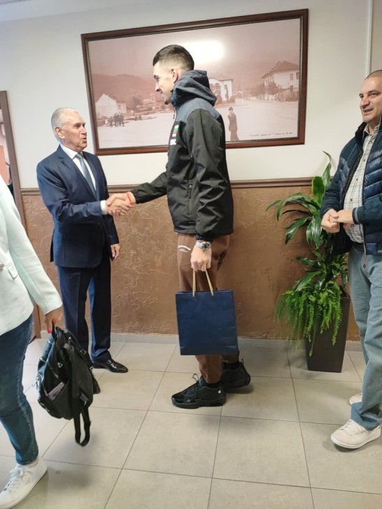 Сребърният медалист от световното първенство по волейбол - Преслав Петков, бе специален гост днес в Община Правец. Кметът Румен Гунински приветства своя съгражданин с думите: "Добре дошъл у дома! Правец се гордее с теб! Дерзай, по правия път нагоре!"