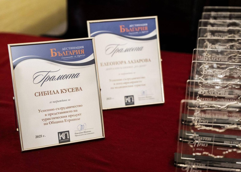 Община Етрополе получи Златен приз за динамично развиваща се туристическа дестинация!