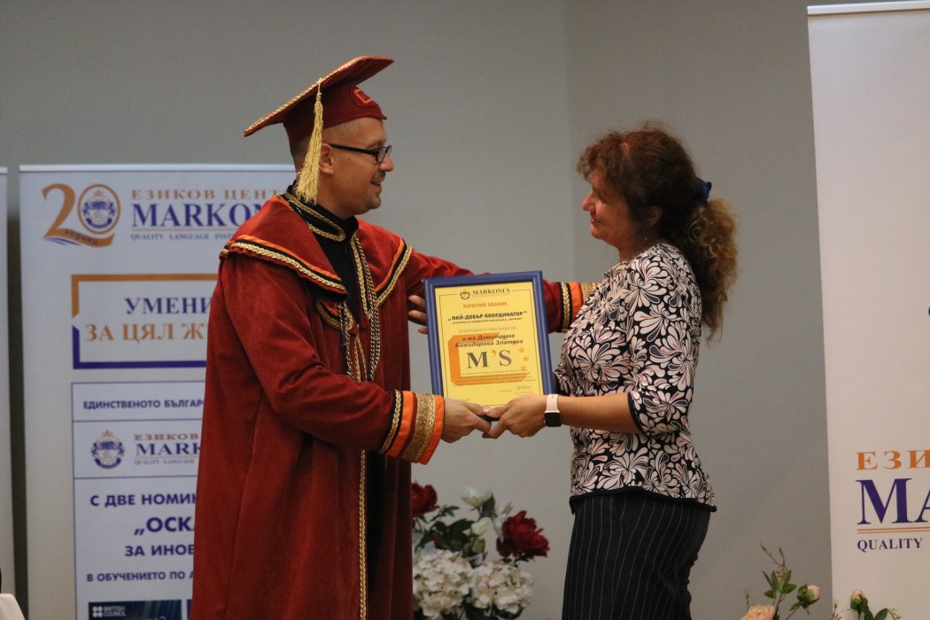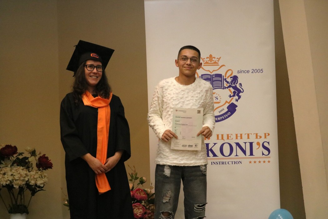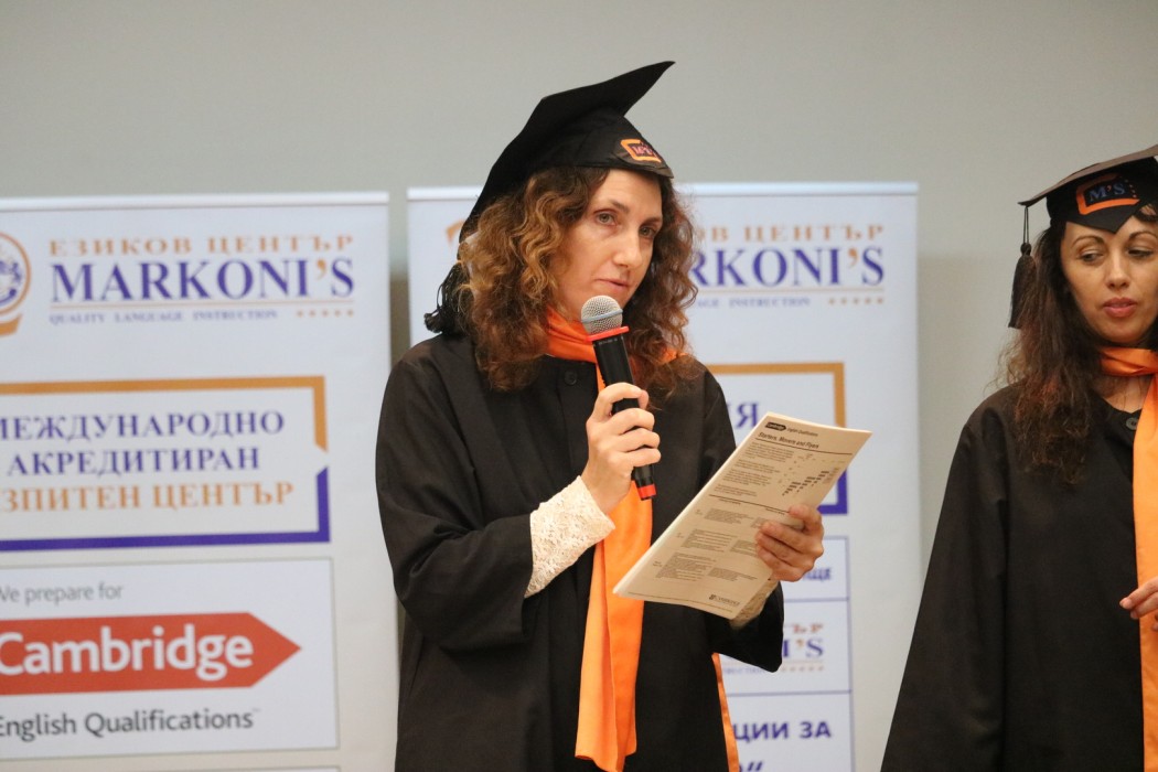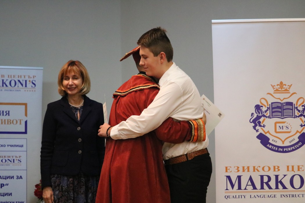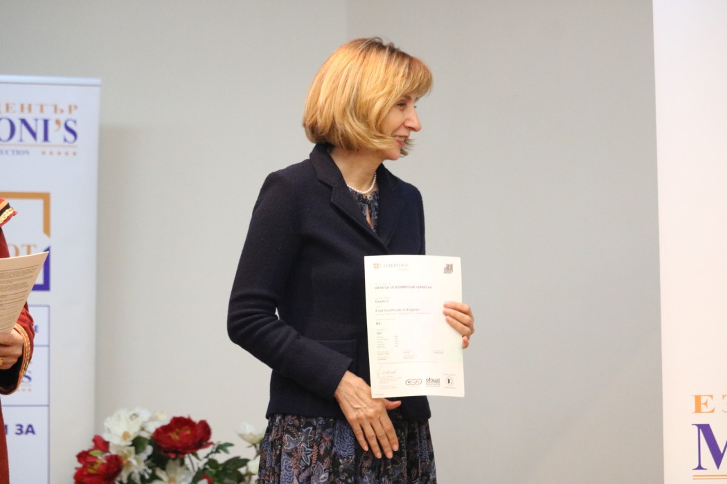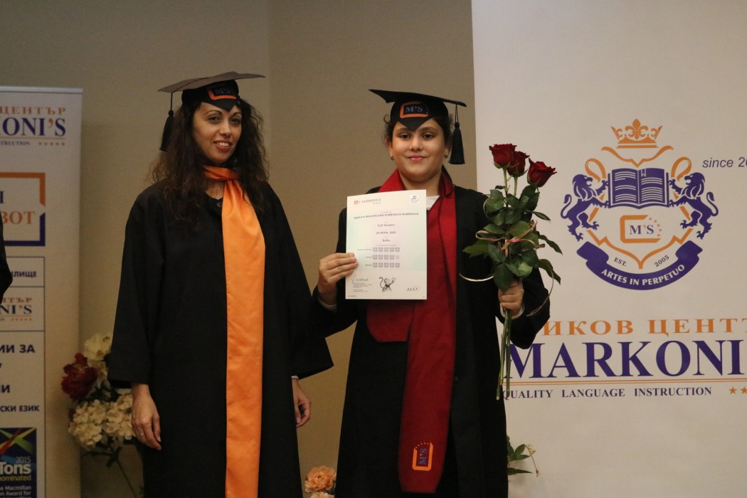 В малкия салон на НЧ „Христо Ботев 1884“ – Ботевград се проведе тържествената церемония по връчването на международно признатите сертификати на Кеймбридж на възпитаниците на Езиков център „Марконис“. Събитието се състоя вчера - 9 октомври, и съвпадна с важен юбилей – 15 години от официалното партньорство на центъра с университета Кеймбридж.