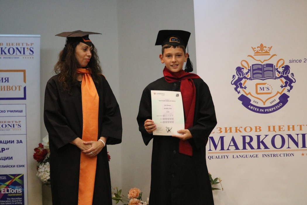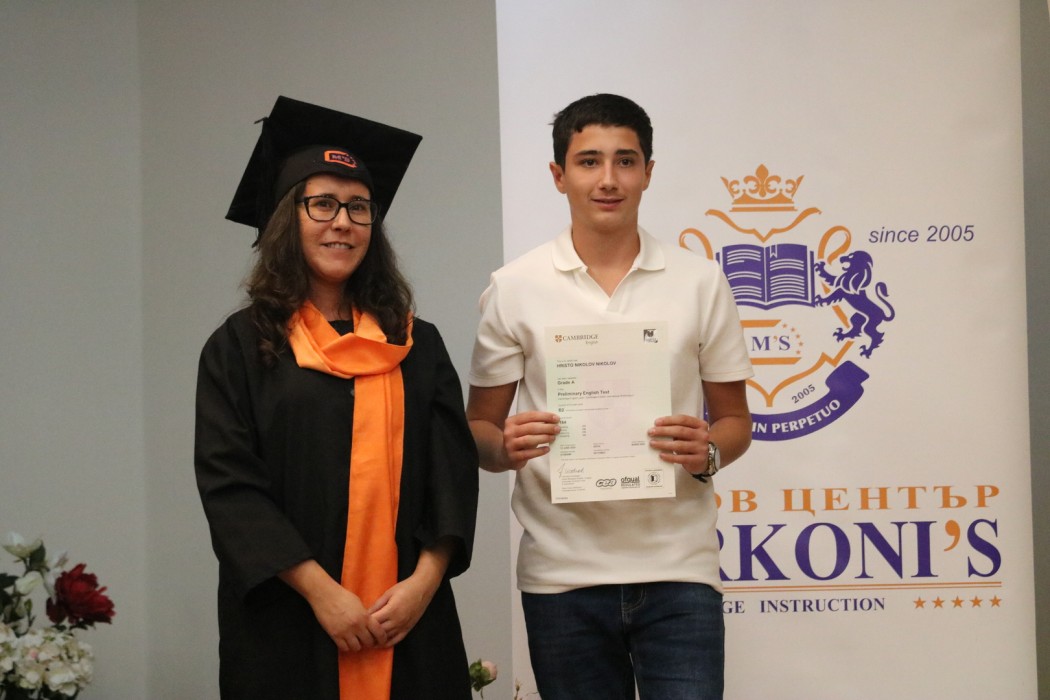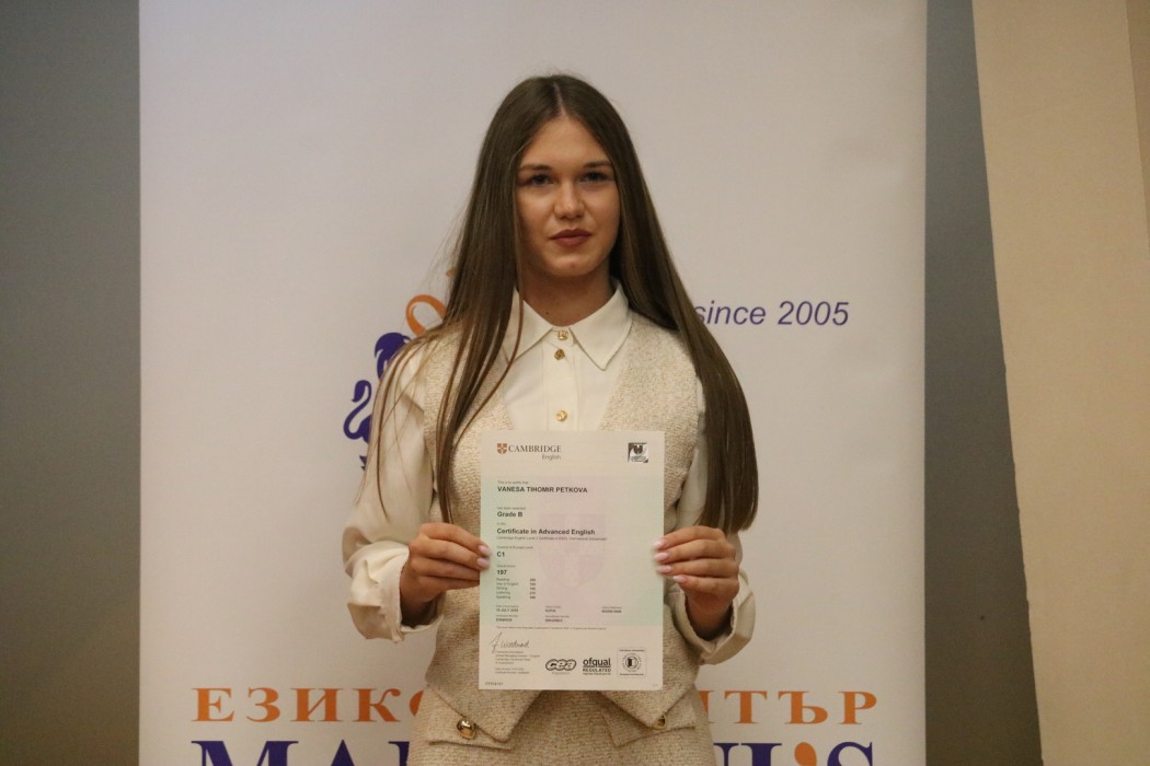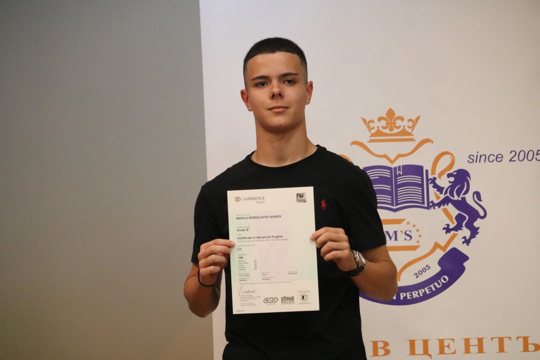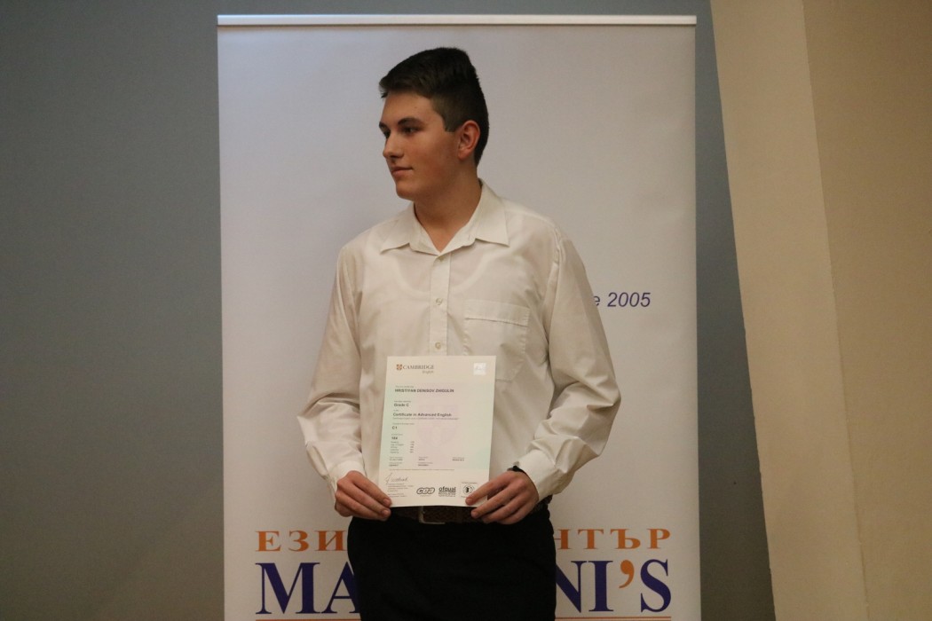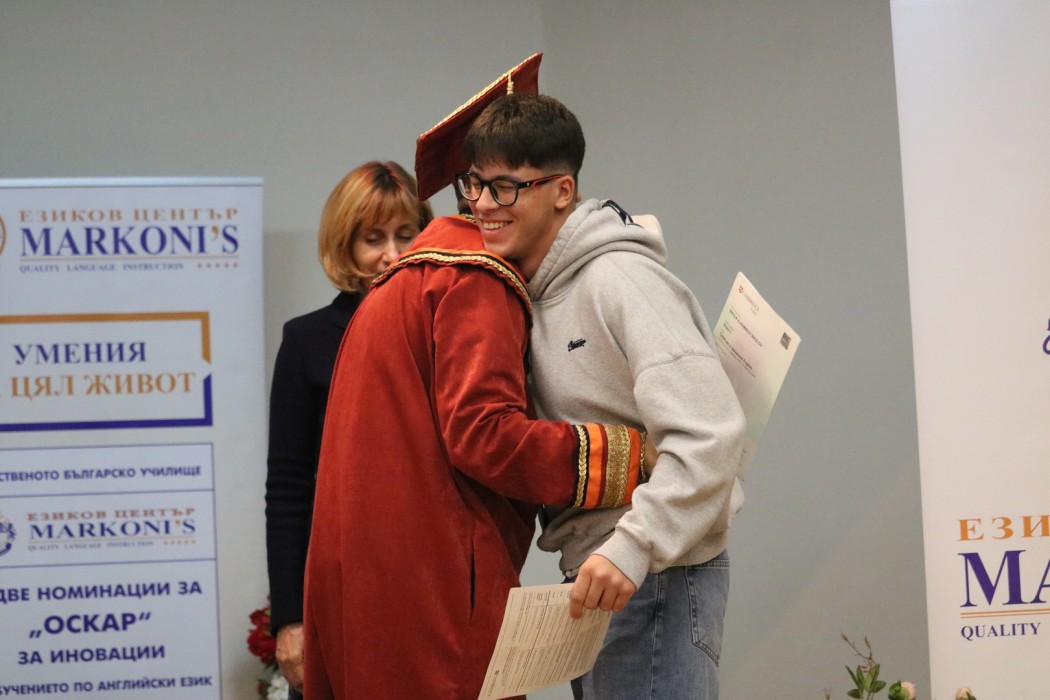 Тази година сертификати получиха 86 ученици, положили успешно изпитите по английски език. От тях 48 са с най-високата възможна оценка, което представлява 55,8% от всички кандидати – поредно доказателство за високото ниво на подготовка в „Марконис“.