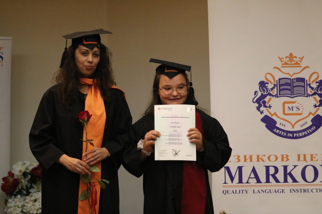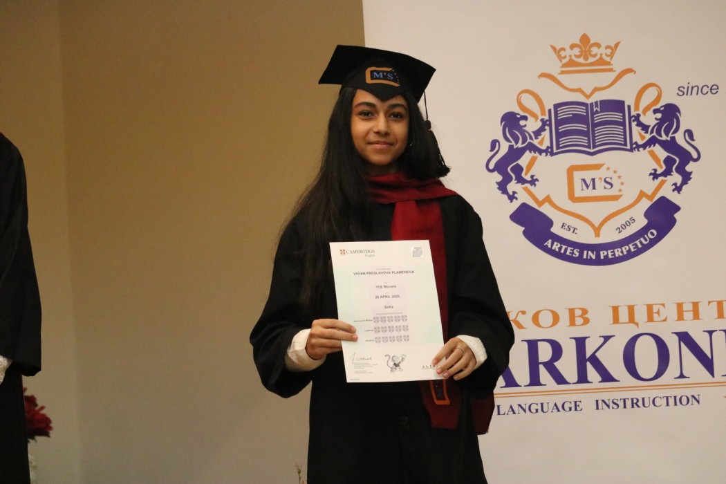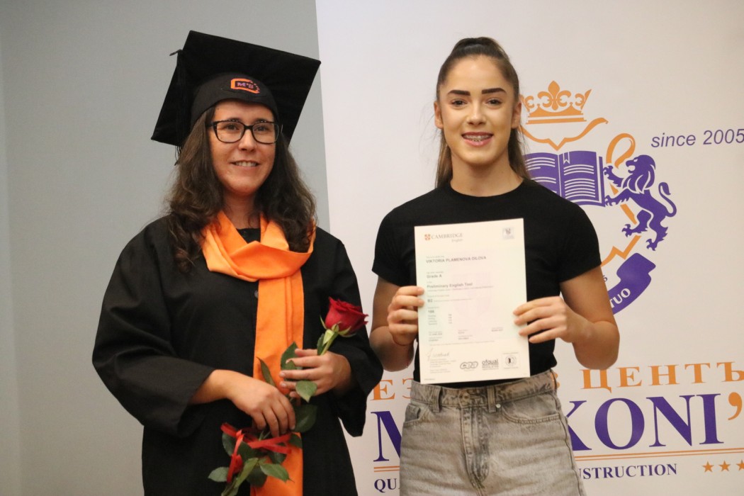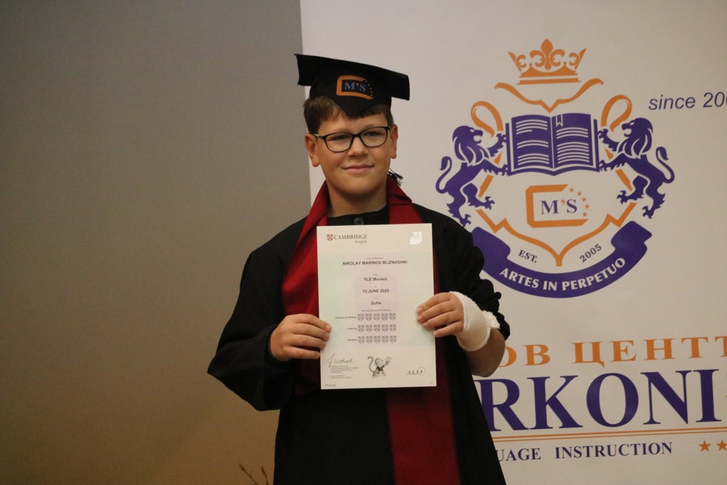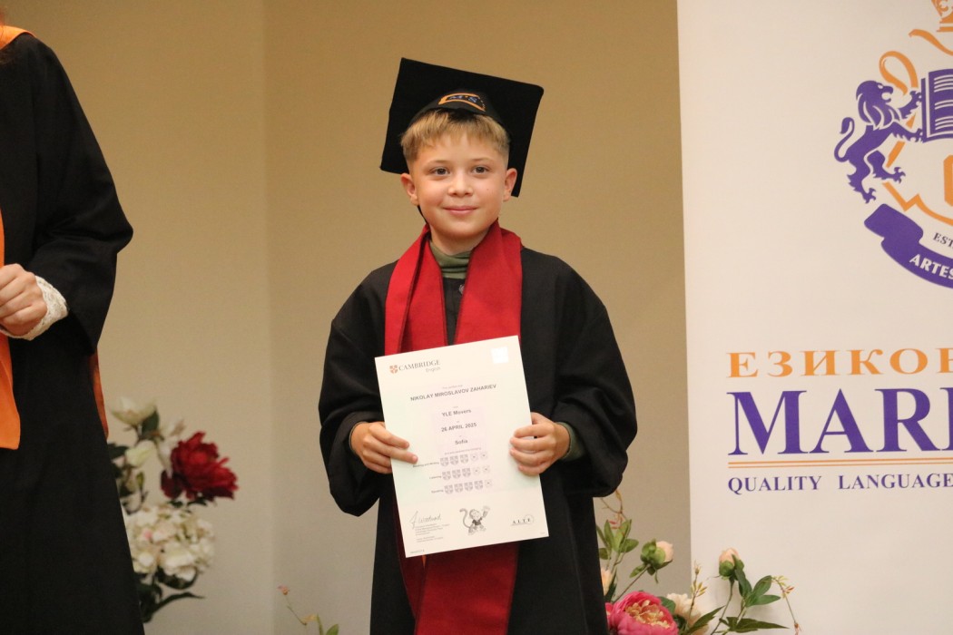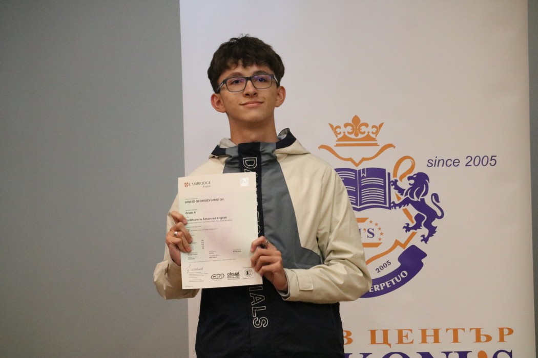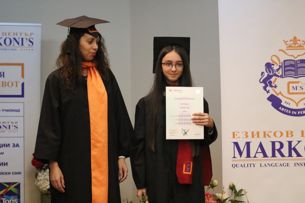 Тази година сертификати получиха 86 ученици, положили успешно изпитите по английски език. От тях 48 са с най-високата възможна оценка, което представлява 55,8% от всички кандидати – поредно доказателство за високото ниво на подготовка в „Марконис“.