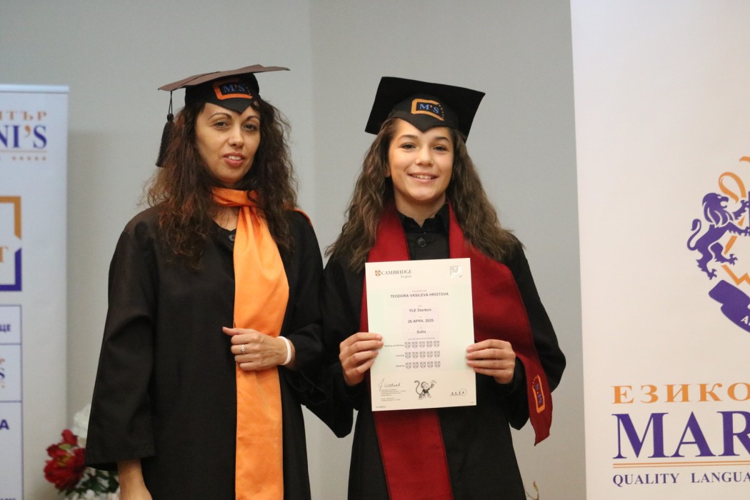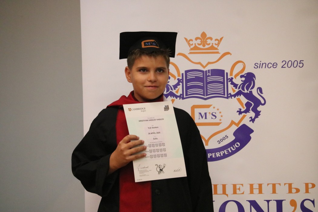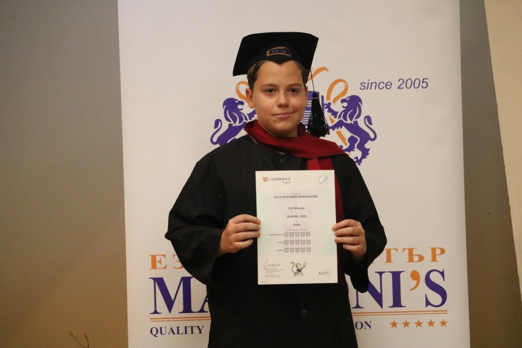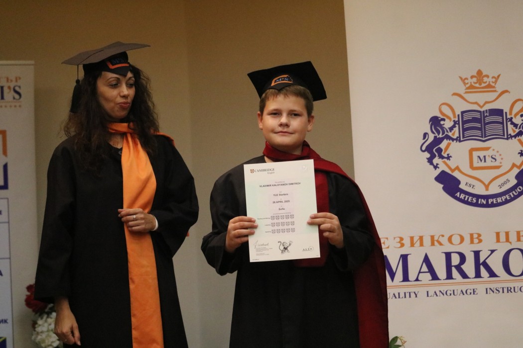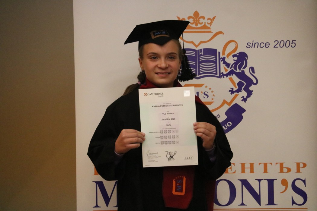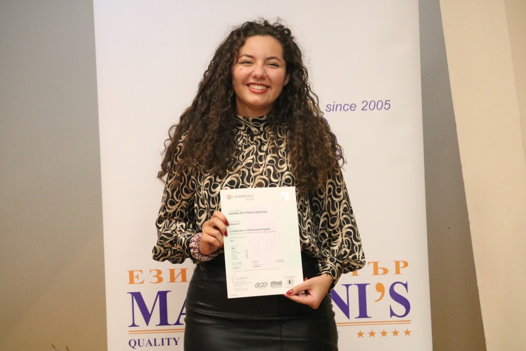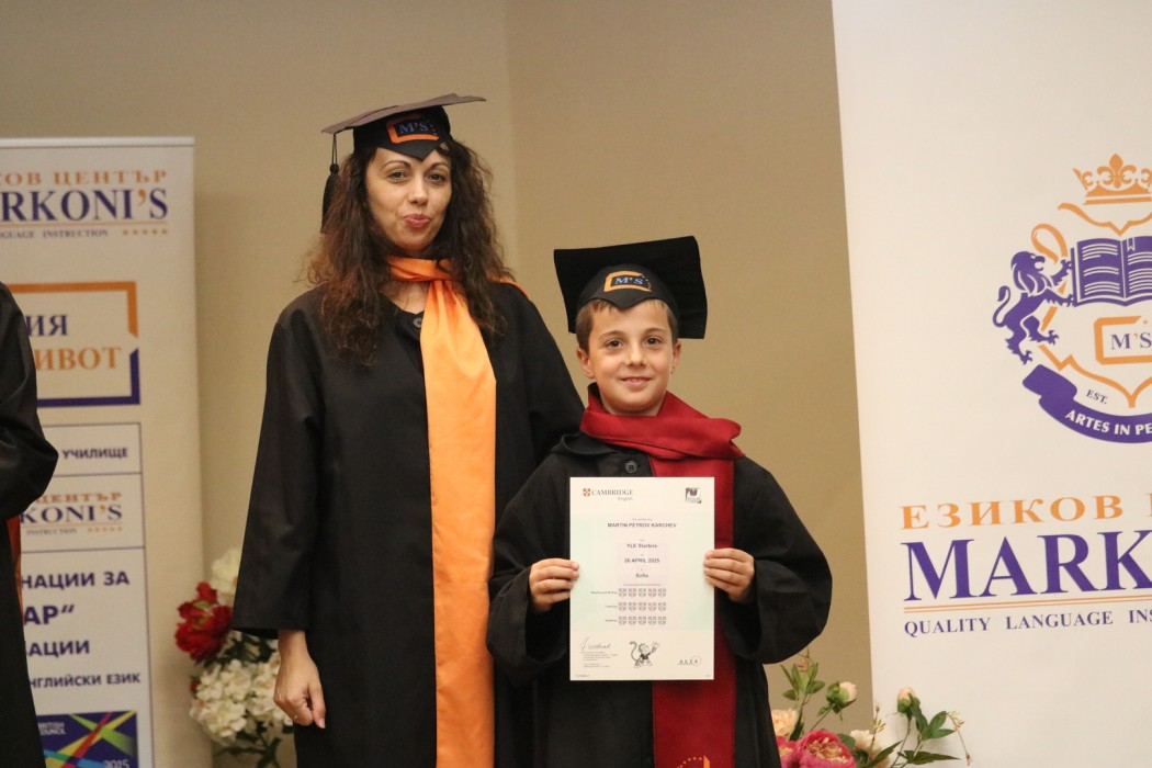 Тази година сертификати получиха 86 ученици, положили успешно изпитите по английски език. От тях 48 са с най-високата възможна оценка, което представлява 55,8% от всички кандидати – поредно доказателство за високото ниво на подготовка в „Марконис“.