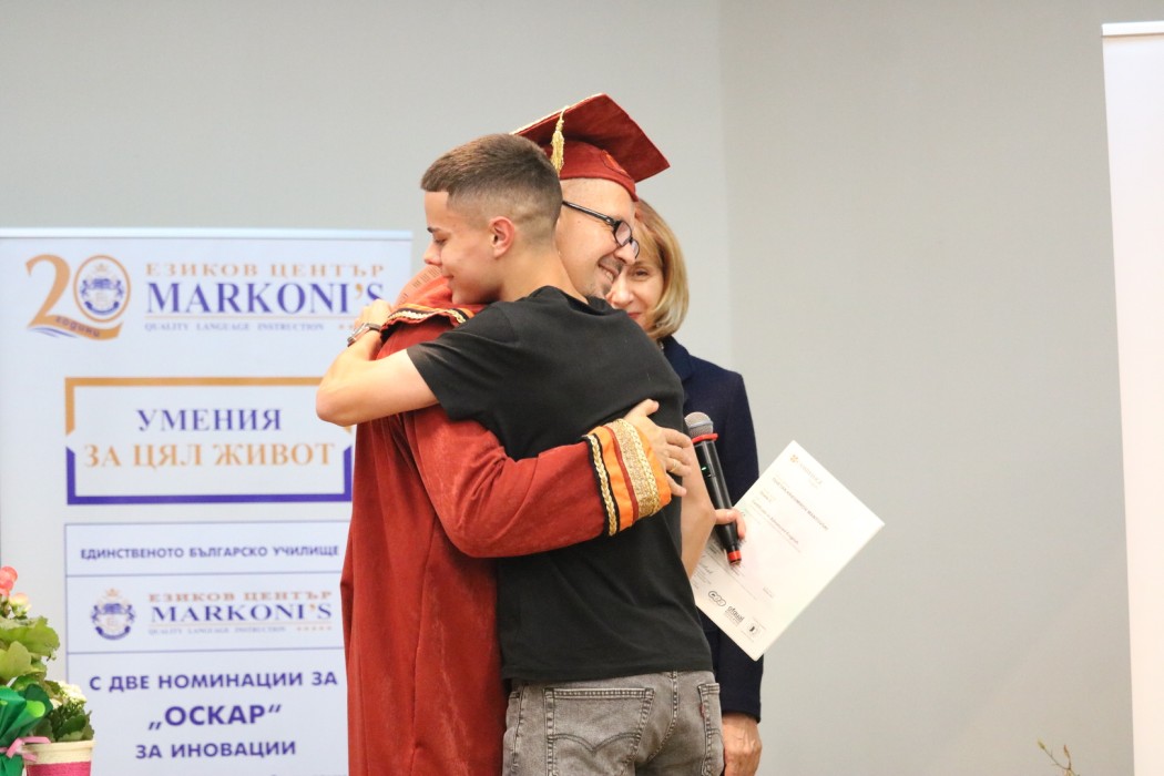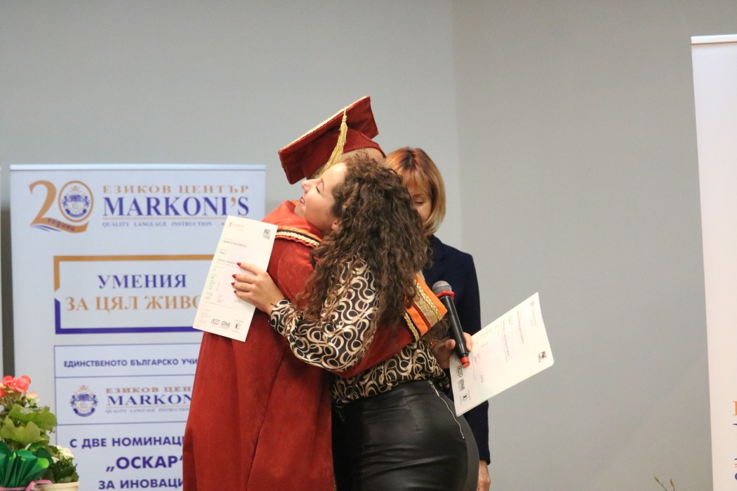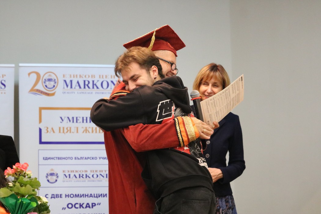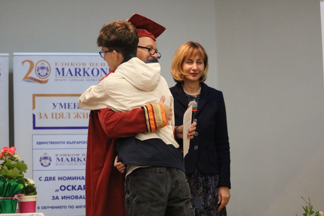 Вечерта завърши с обща снимка – символ на постигнатите резултати, споделените усилия и вдъхновението, което Езиков център „Марконис“ продължава да носи вече 20 години.