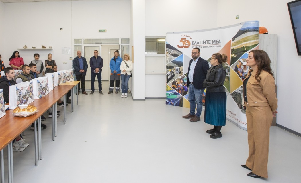 На работните площадки учениците бяха приветствани от представители на дирекции „Човешки ресурси“ на двете компании от Група ГЕОТЕХМИН, които ги поздравиха за първия им работен ден.