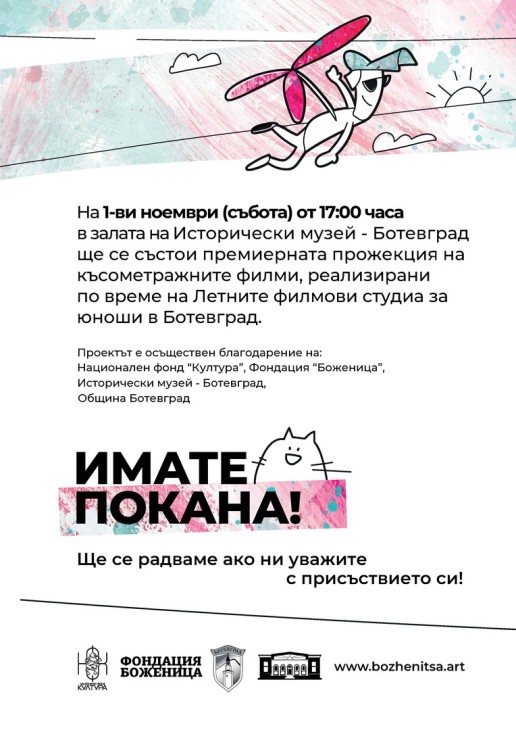 “Събитието ще се проведе на 1-ви ноември от 17:00 часа в залата на Историческия музей в Ботевград. Входът е свободен, а Вашето присъствие би било чудесно допълнение към атмосферата на този творчески празник. То е важно за нас и за младите творци, които представят своето изкуство пред Вас!“, съобщават организаторите.