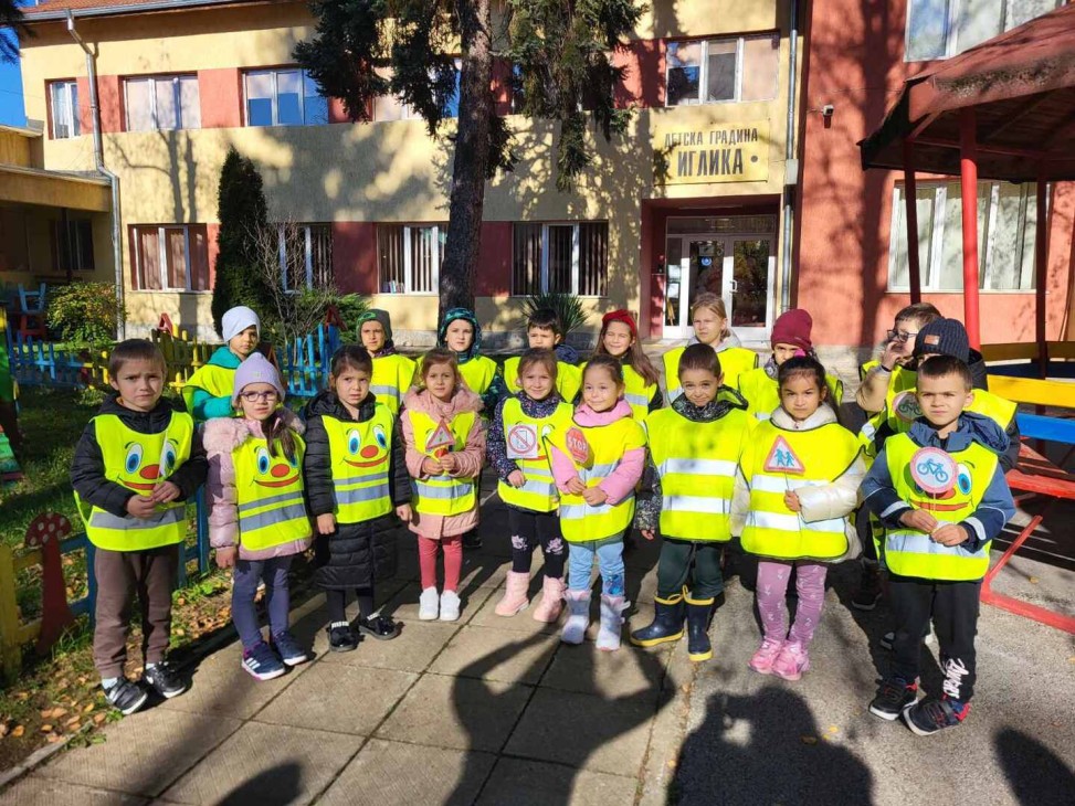 Екипът на детска градина „Иглика“ изказва искрена благодарност и признателност към полицейските служители от КАТ – мл. инсп. Преслава Иванова и мл. инсп. Христо Христов, без чиято помощ тази важна и интересна проява нямаше да бъде възможна.
