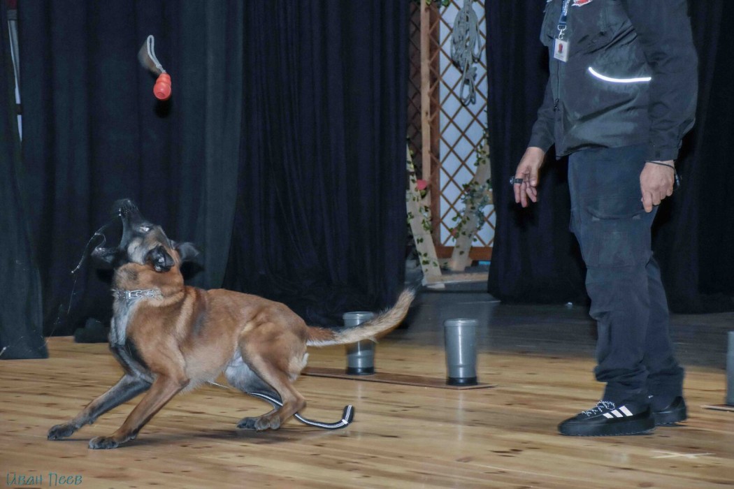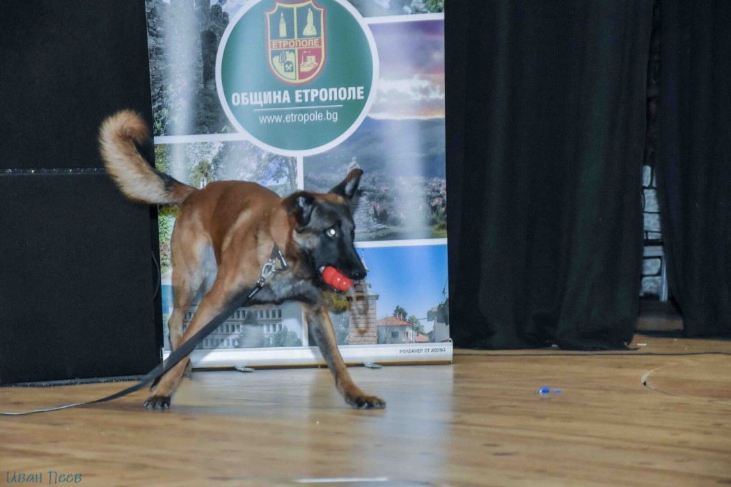 Служител от фирма „Делта гард“ направи демонстрация със специализирани кучета, които могат да работят във всякакви условия. Учениците посрещнаха с бурни аплодисменти кучето Крус, порода белгийска овчарка - Малиноа, което е специално обучено да открива наркотични вещества. Той обясни, че рецепторите за миризма на кучето са около 300 милиона, а човешките рецептори са само до 6 милиона. Следващата демонстрация беше на куче за охрана с името Дон, което се оказа брат на кучето Крус. Двете кучета са с известно потекло, техният баща е бил във Френския легион.