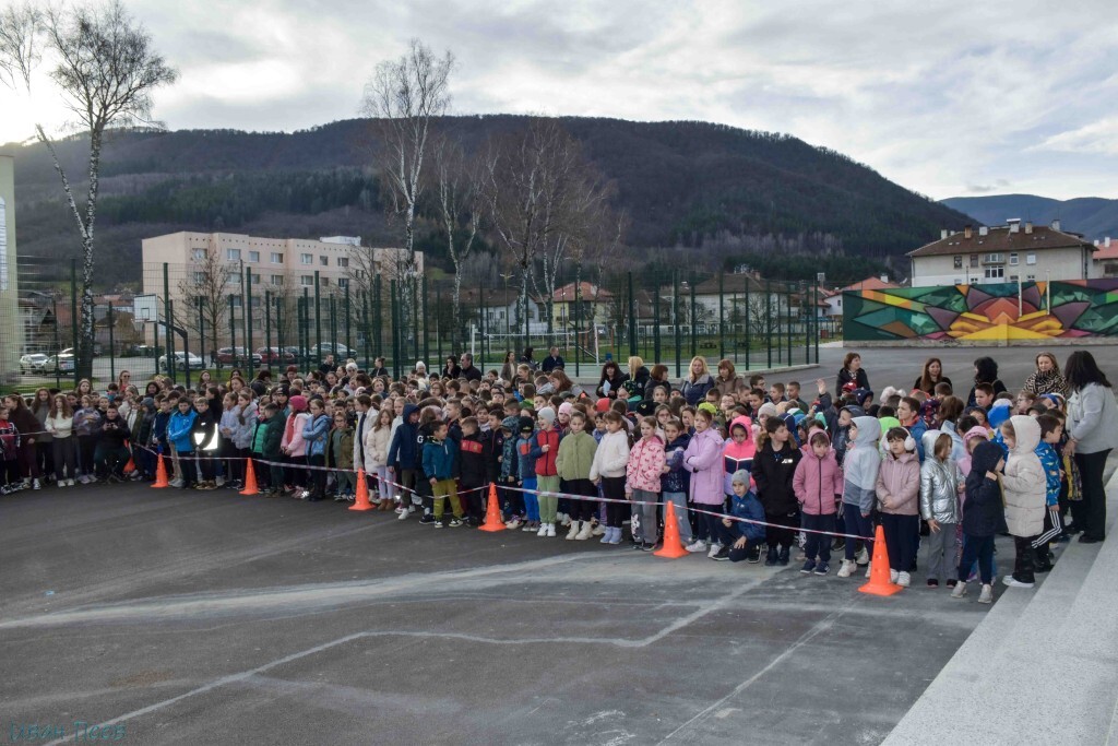 „Благодаря на всеки един от вас, че днес сме заедно на една дълго мечтана инициатива от екипа на средно училище „Христо Ясенов“. Вие превърнахте двора на училището от желана мечта в реалност. Ремонтът на училищния двор е един от трудните обекти, но и изключително полезен като част от идеята за подобряване на инфраструктурата в училище и създаване на по-добри условия за отдих и спорт“, каза директорът на гимназията г-жа Мила Манчева. Тя изказа своята искрена благодарност към кмета инж. Владимир Александров, на управителя на Геотехмин ООД проф. дтн инж. Цоло Вутов и на изпълнителния директор на компанията Доминик Хамерс, на Аспарух Лепичев – изпълнителен директор на Пътстрой-92 – дружеството, обновило двора, на Инвест хоум 24 – фирмата, направила новите стълби и на общинското предприятие БКС, който не спираха да оказват съдействие по време на ремонтните дейности.