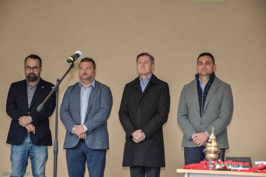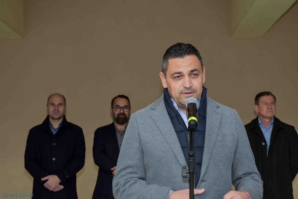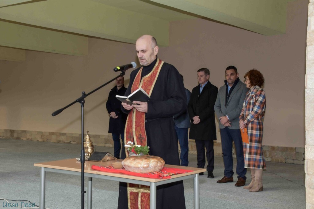 Инж. Владимир Александров приветства присъстващите и в обръщението си към тях заяви: „За мен е изключителна чест да съм кмет на община Етрополе и да имам във ваше лице партньори, с които един кмет може да се гордее. Искам да благодаря на всички фирми, които се включиха в ремонтните дейности и помогнаха този проект да се реализира. Предизвикателство е да се работи в община Етрополе, а още повече да бъдеш кмет. Радвам се, че за две години успяхме да направим две нови спортни площадки, този ремонт и да придадем един нов облик на училището. Поставил съм си за цел да се поставят и соларни панели на басейна и общежитието, с които ще намалим разходите.“.