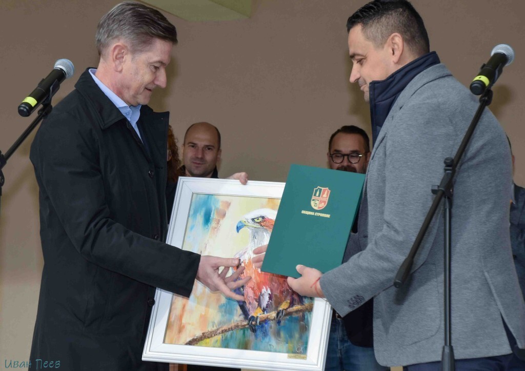 Кметът поднесе на г-н Доминик Хамерс красива картина с изображение на орел от местния творец Стефка Хикова по повод рождения му ден, 24 ноември, който съвпада с Освобождението на Етрополе.