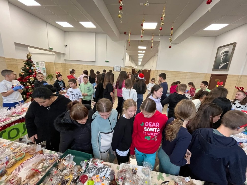 Коридорите на училището бяха изпълнени с неустоим аромат на коледни сладки, ръчно изработени сувенири, искрящи усмивки и топлина – един истински празничен свят, сътворен от ученици, учители и родители.