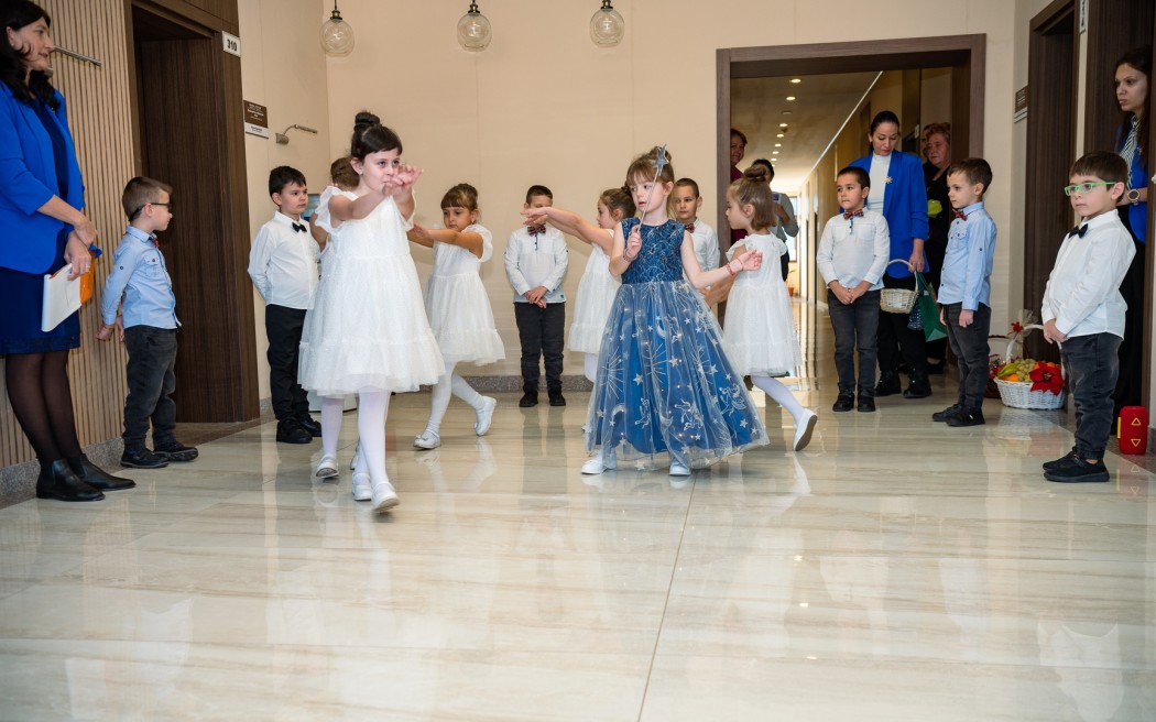 С кратко представление, изпълнено с коледни песни, танци и стихотворения, децата създадоха весело предпразнично настроение в делничния ден. Облечени празнично, малчуганите отправиха сърдечен поздрав за здраве, мир и щастие, и пожелаха на общинското ръководство: „Желаем на вас и вашите семейства здраве, мъдрост и благословение! Благодарим ви за усилията, които полагате за развитието на нашия град, за грижата към хората, за добрите дела, които правят Етрополе още по-красиво и спокойно място!“