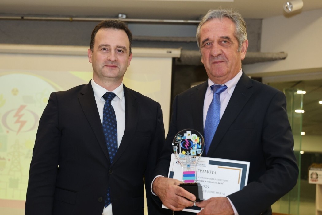 Отличието бе връчено от министъра на енергетиката г-н Жечо Станков на инж. Драгомир Драганов-изпълнителен директор на Елаците-Мед, в присъствието на народни представители, заместник-министри, ръководители на водещи институции и експерти.