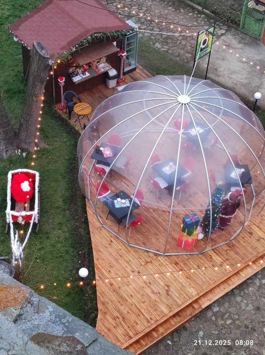 Необикновното е самото заведение, напомнащо за някогашнте прабългарски аули или на северните иглута.