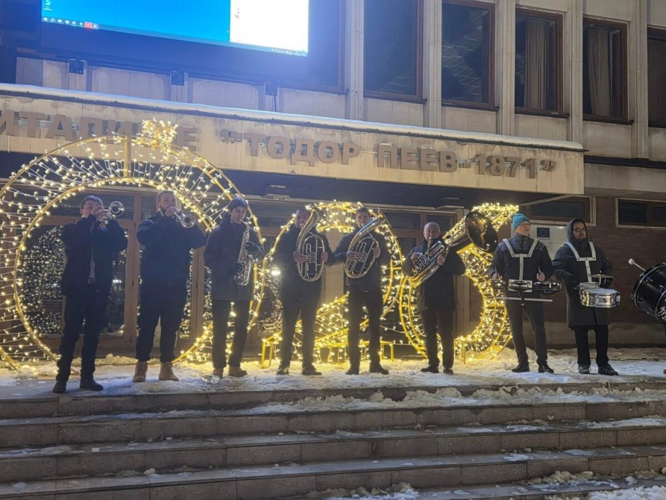 Празнична заря озари небето над града и всички се хванаха на новогодишното хоро под звуците на Етрополската духова музика.