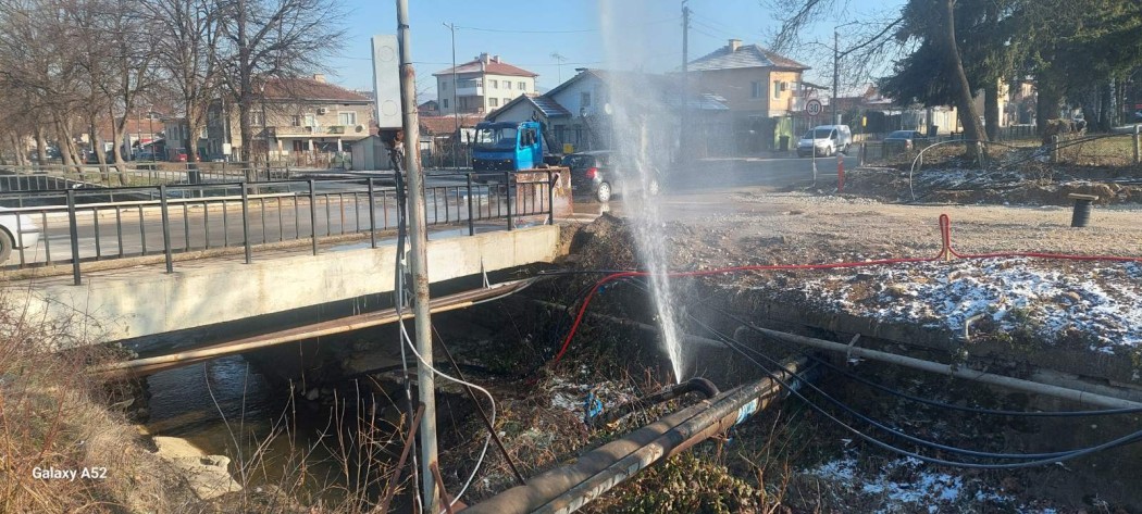 Спукана тръба на водопровода на бул. „Трети март”