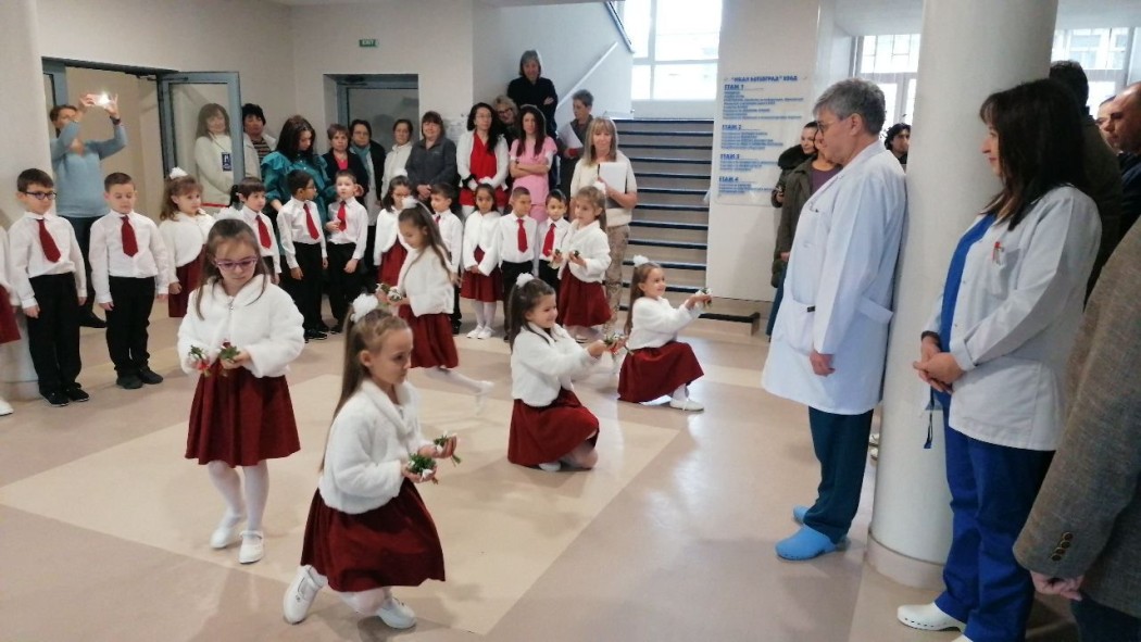По традиция Денят на родилната помощ бе отбелязан тържествено в местната болница. Тази година поздрав към лекарите и акушерите от Родилното отделение отправиха малчуганите от ДГ "Кокиче“. Децата и техните учители бяха подготвили специална програма с песни, стихове и танци, посветени на днешния празник. Пресъздаден бе и обичаят „миене на ръце“. Те поднесоха благопожелания и благодарност към екипа на Родилното отделение, който посреща новия живот и полага първите грижи за него.