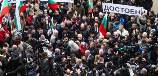 С решение на Конституционния съд от днес бяха прекратени предсрочно пълномощията на Румен Радев, а Илияна Йотова встъпи в длъжност като държавен глава. На парадния вход на институцията президентът Йотова изпрати Румен Радев, който на площада беше посрещнат от граждани. „Радвам се, че преди девет години българите ми гласуваха доверие да бъда президент и тяхната подкрепа продължава“, заяви пред медиите Румен Радев и допълни, че не може да бъде спряна вълната. „Защото сме много, защото сме заедно и защото каузата ни е обща. Тя е България“, каза Румен Радев.