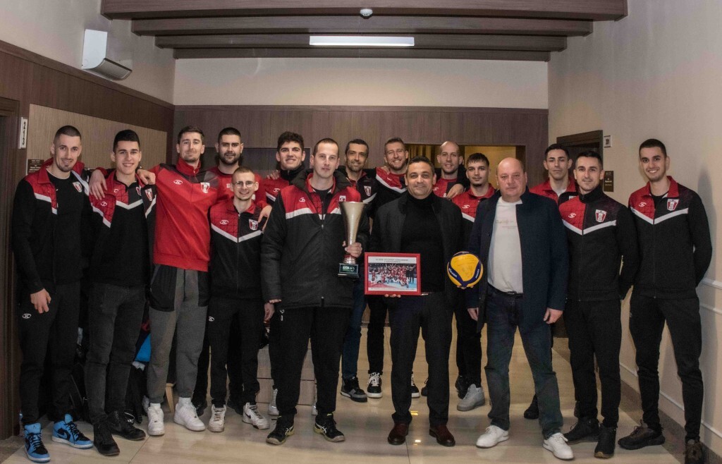 Волейболистите от ВК „Етрополе“ посетиха кмета на oбщина Етрополе инж. Владимир Александров, за да му благодарят лично за подкрепата, която им оказва.
