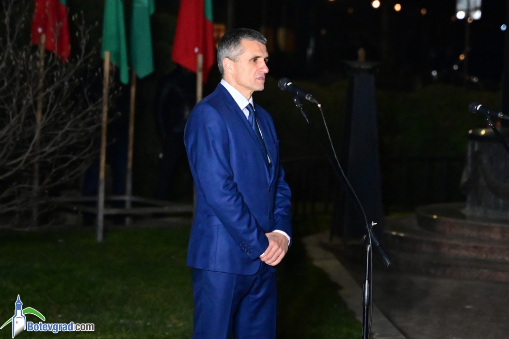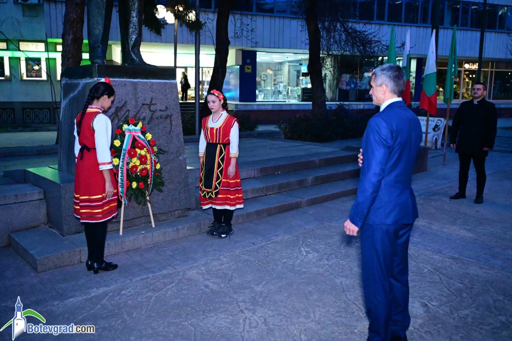 Кметът Иван Гавалюгов поздрави ботевградчани и гостите по случай Националния празник. “Великите сили винаги, в малка или голяма степен, са определяли и направлявали съдбите на по-малките държави. Но смятам, че, уповавайки се на нашата славна история, на свободолюбивия дух, който носим, и на нашите духовни и морални ценности, благодарение на нашата култура, трябва да намерим своето достойно място в този глобален свят и да се опитаме да бъдем по-самостоятелни, по-уверени и с по-голямо самочувствие да направляваме собствената си съдба.