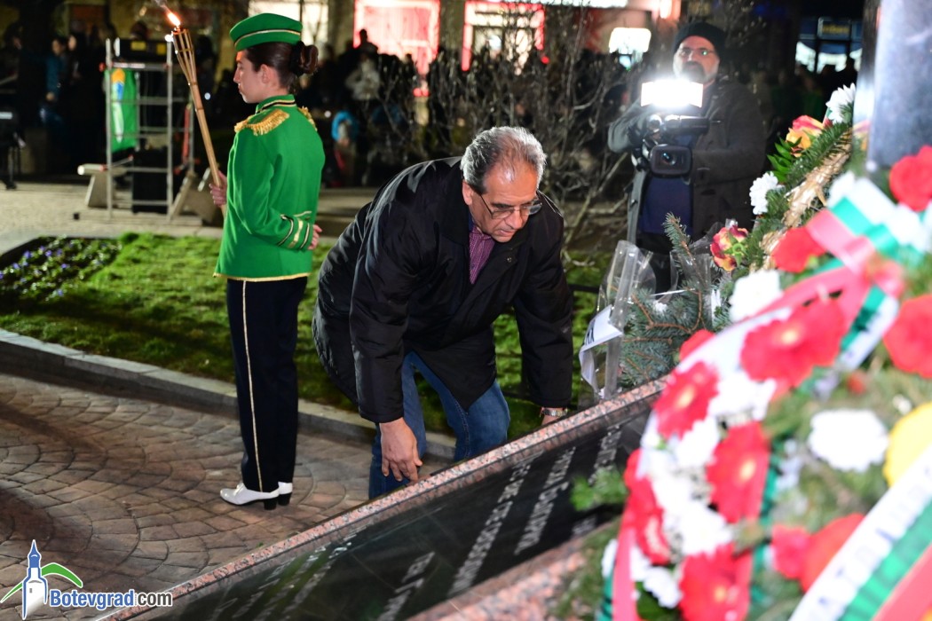 Честванията на Националния празник – 3-ти март, в Ботевград завършиха с 3D мапинг шоу, чрез което върху сградата на музея бяха пресъздадени историчеки моменти, предшестващи Освобождението, и тържествена заря. Преди това кметът Иван Гавалюгов поднесе венец и сведе глава пред паметника на Христо Ботев. Съпроводени от факелно шествие, официалните лица и граждани се отправиха към Паметника на свободата, където беше запален вечният огън, символизиращ почитта към загиналите герои и безсмъртието на техния подвиг.