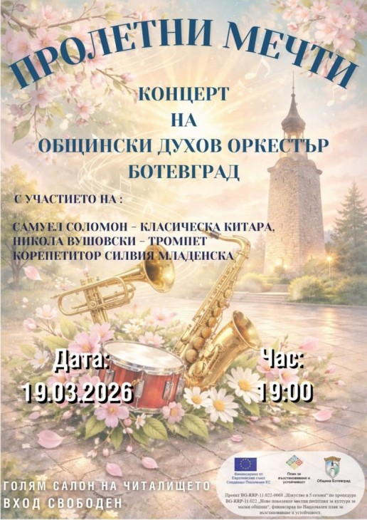 Очаква ви една вечер, изпълнена с музика, настроение и пролетно вдъхновение. Под звуците на духовите инструменти сцената ще оживее с красиви мелодии и емоции.