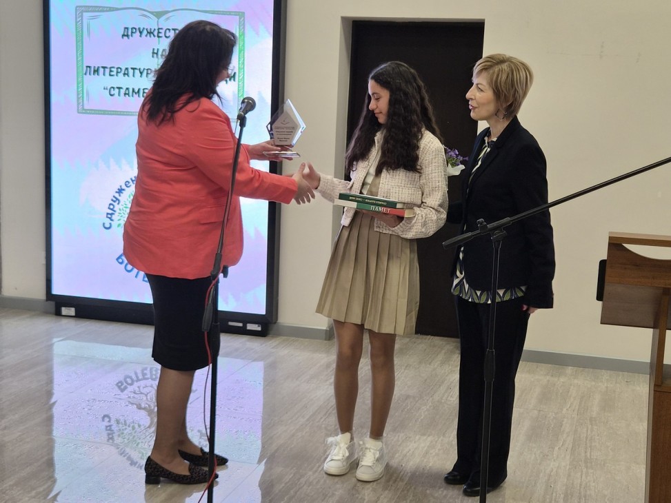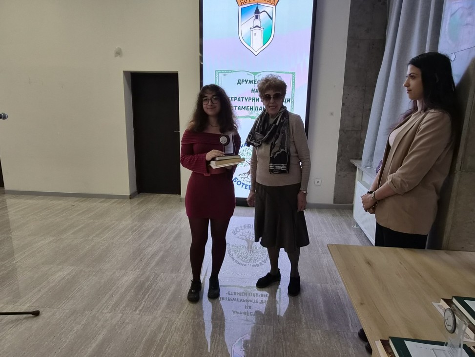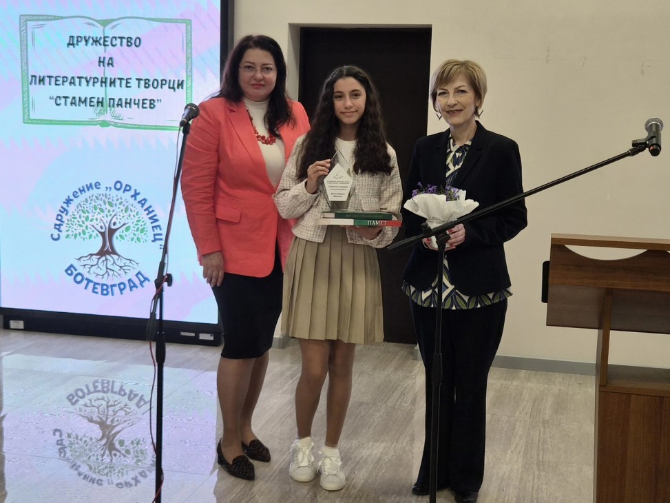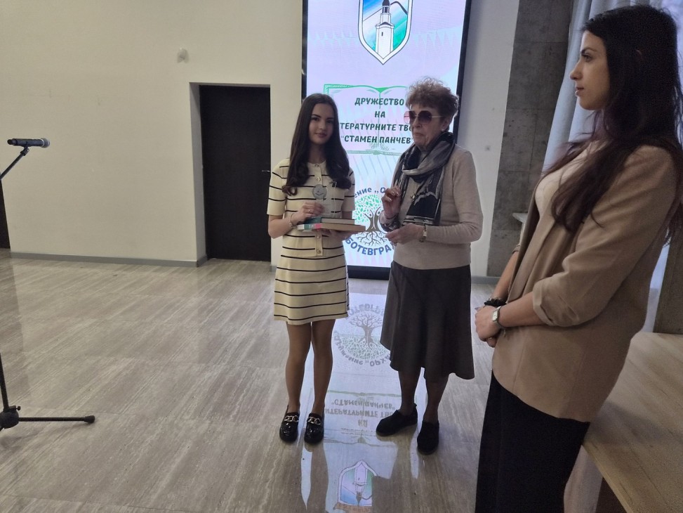 Наградата на Дружеството на литературните творци от Ботевград “Стамен Панчев“ – за най-добре представил се местен автор, отиде при Соня Пламенова Стаменова – ученичка от ПГПЧЕ “Алеко Константинов“ – Правец, която е от Ботевград. Отличието бе връчено от Симеон Ангелов – зам.-председател на организацията.