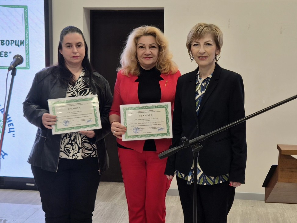 Специални грамоти от Община Ботевград получиха директорите на ОУ „Никола Йонков Вапцаров“ – Дивна Николова, и на ОУ „Васил Левски“ – Зорница Ташева, за активното участие на ученици от ръководените от тях училища в конкурса тази година.