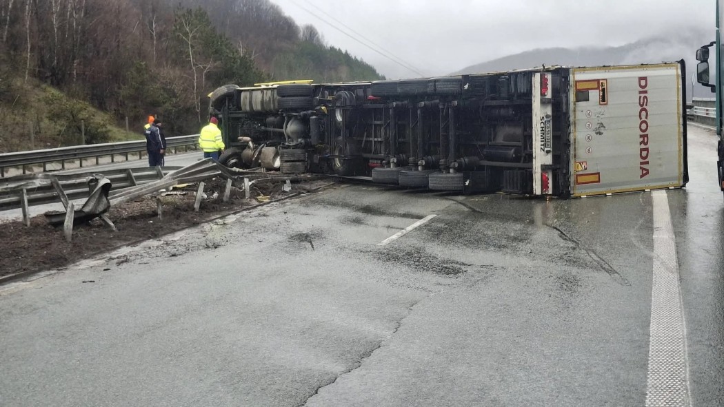 Временното движение при км 35 на АМ „Хемус“(между тунелите "Витиня" и "Топли дол), в посока София, се осъществява в крайната дясна активна лента, а в посока Варна - в аварийната лента. Ограничението е наложено поради аварирал камион в средната разделителна ивица., съобщават от Агенция "Пътна инфраструктура".