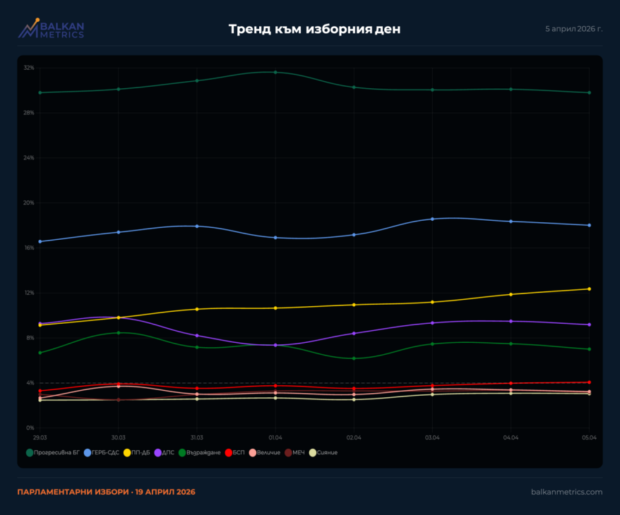 BALKAN METRICS предоставя данни от своята платформа, която дава прогноза в реално време за предизборните нагласи на българските граждани.